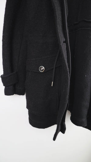 Deerberg Jacke Mantel schwarz Wolle Wollmantel 38 M Cabanjacke