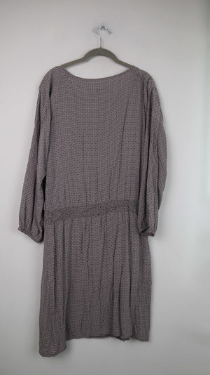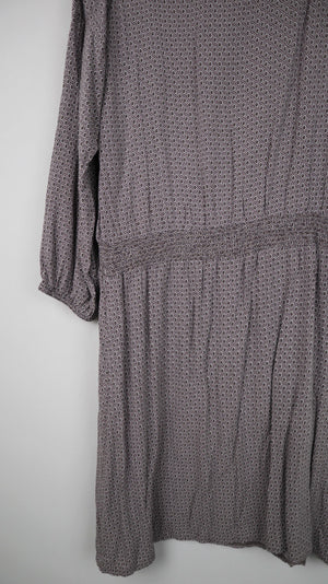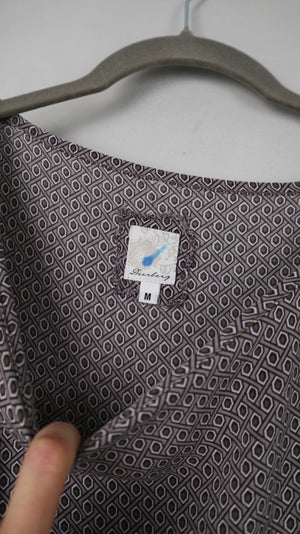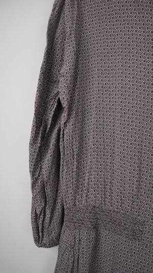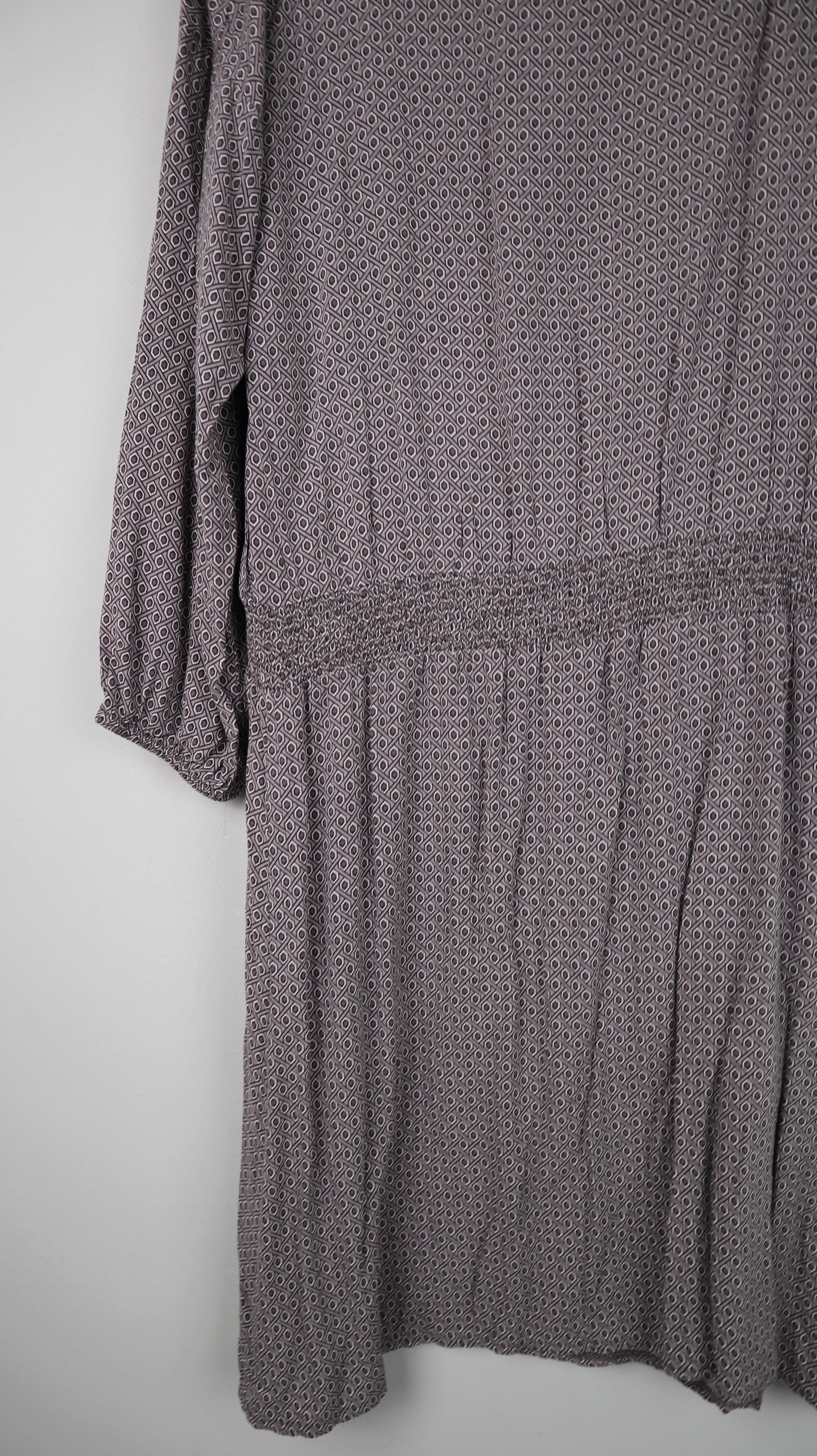 Deerberg Kleid 38 M Midi Midikleid gemustert braun blau geometrisch langarm