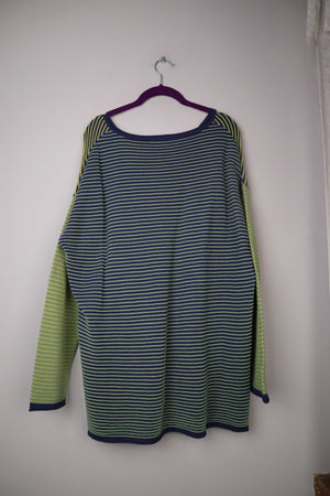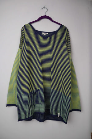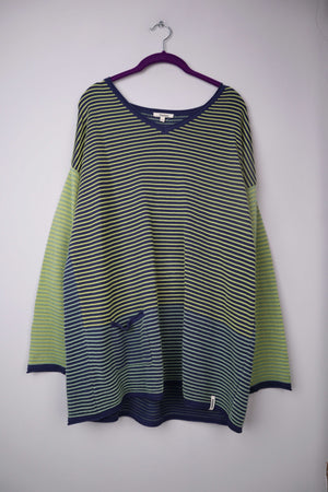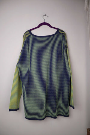 Grün Blauer Pullover in einer 40 L von Deerberg aus Biobaumwolle. 65 cm Achselweite und 64 cm Länge. Plus Versand