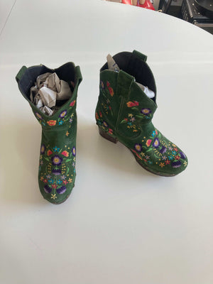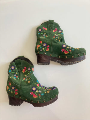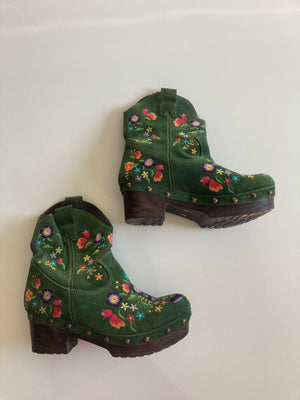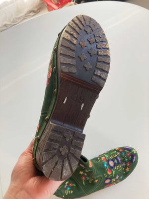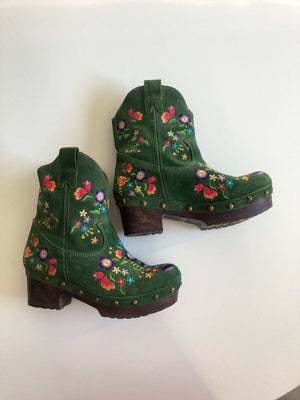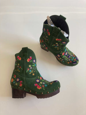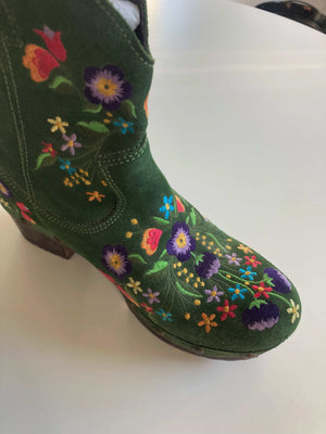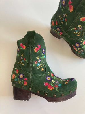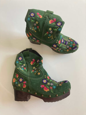 Deerberg Stiefel Boots 39 Wildleder Neu grün bestickt Clogs Absatzschuhe