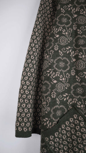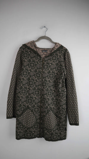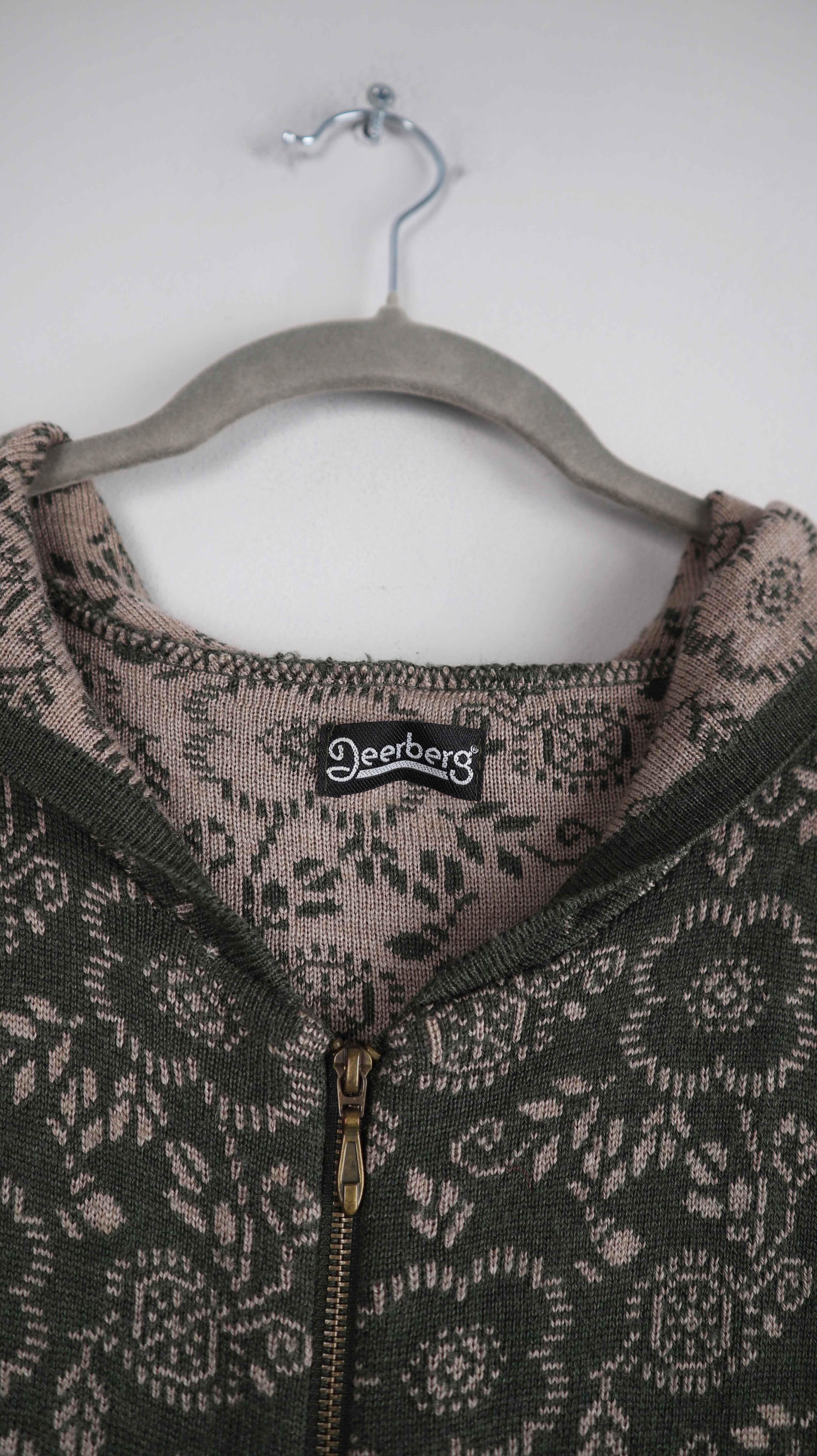 Grün Beige Strickjacke von Deerberg in 36 S. Sie ist eine Zipperjacke. 47 cm Achselweite und 66 cm Länge. Plus Versand