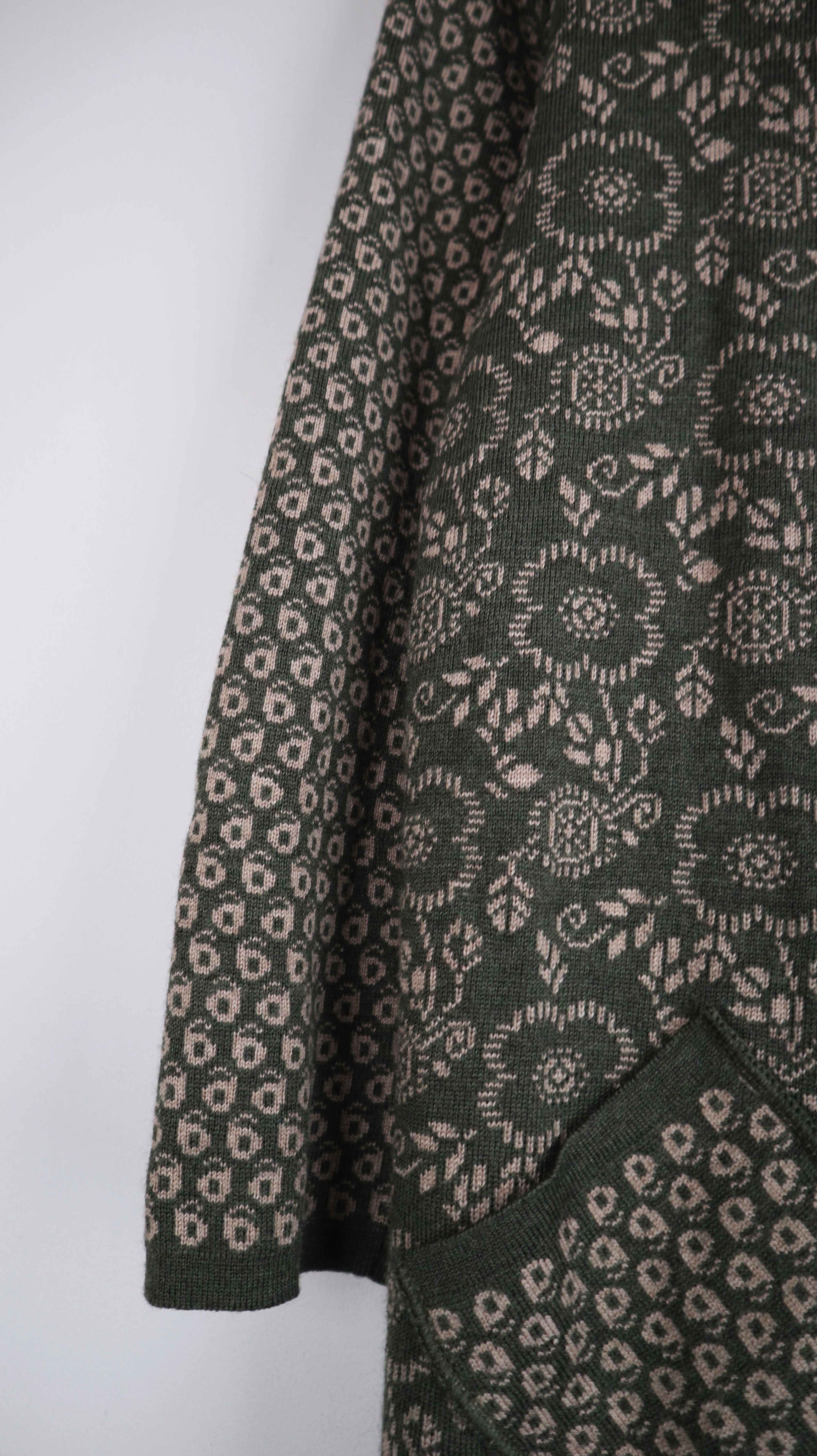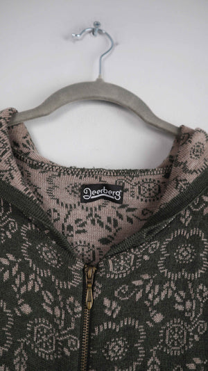 Deerberg Strickjacke Grün 36 S Merinowolle Zipperjacke Beige