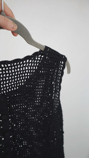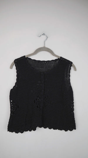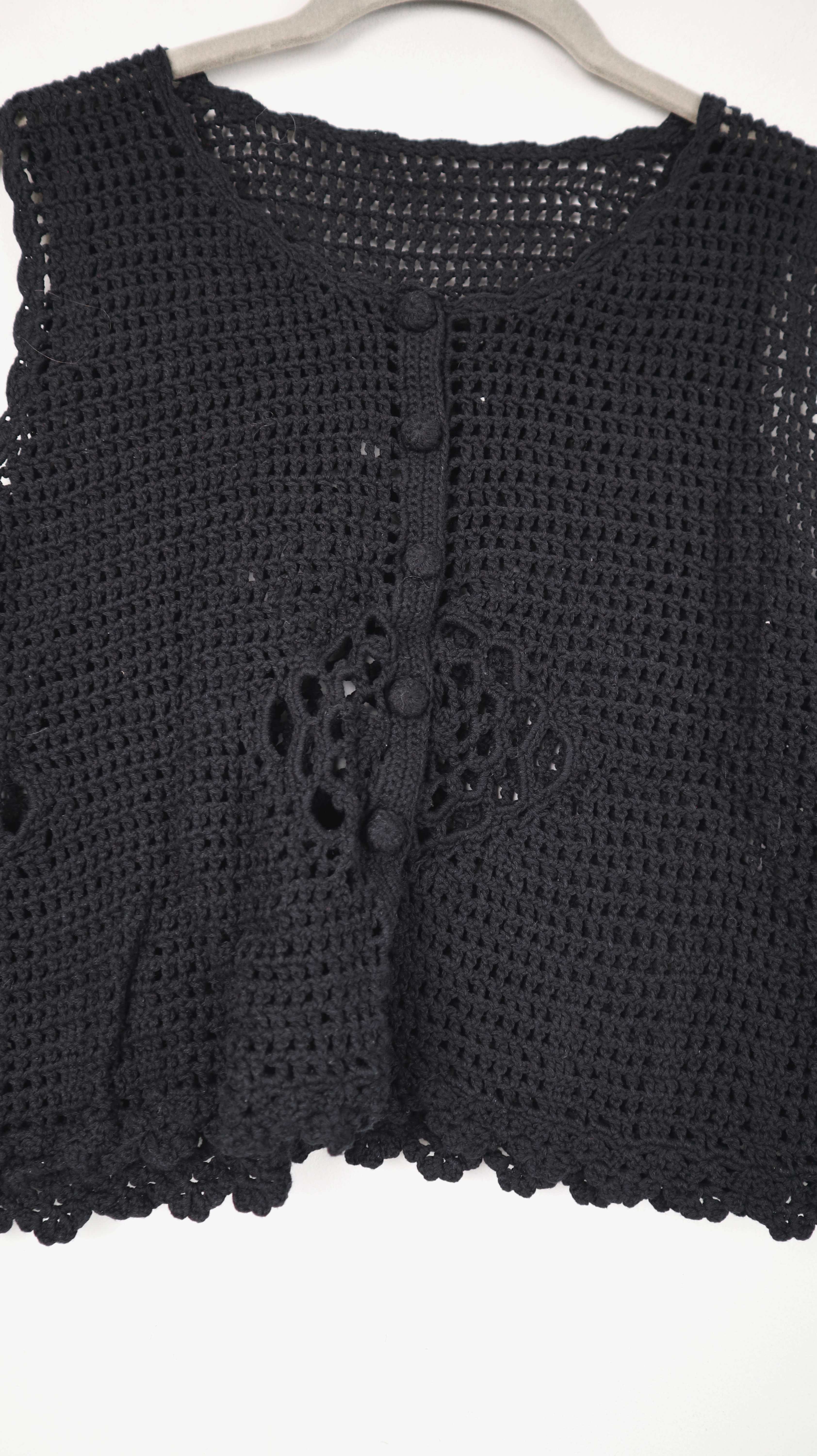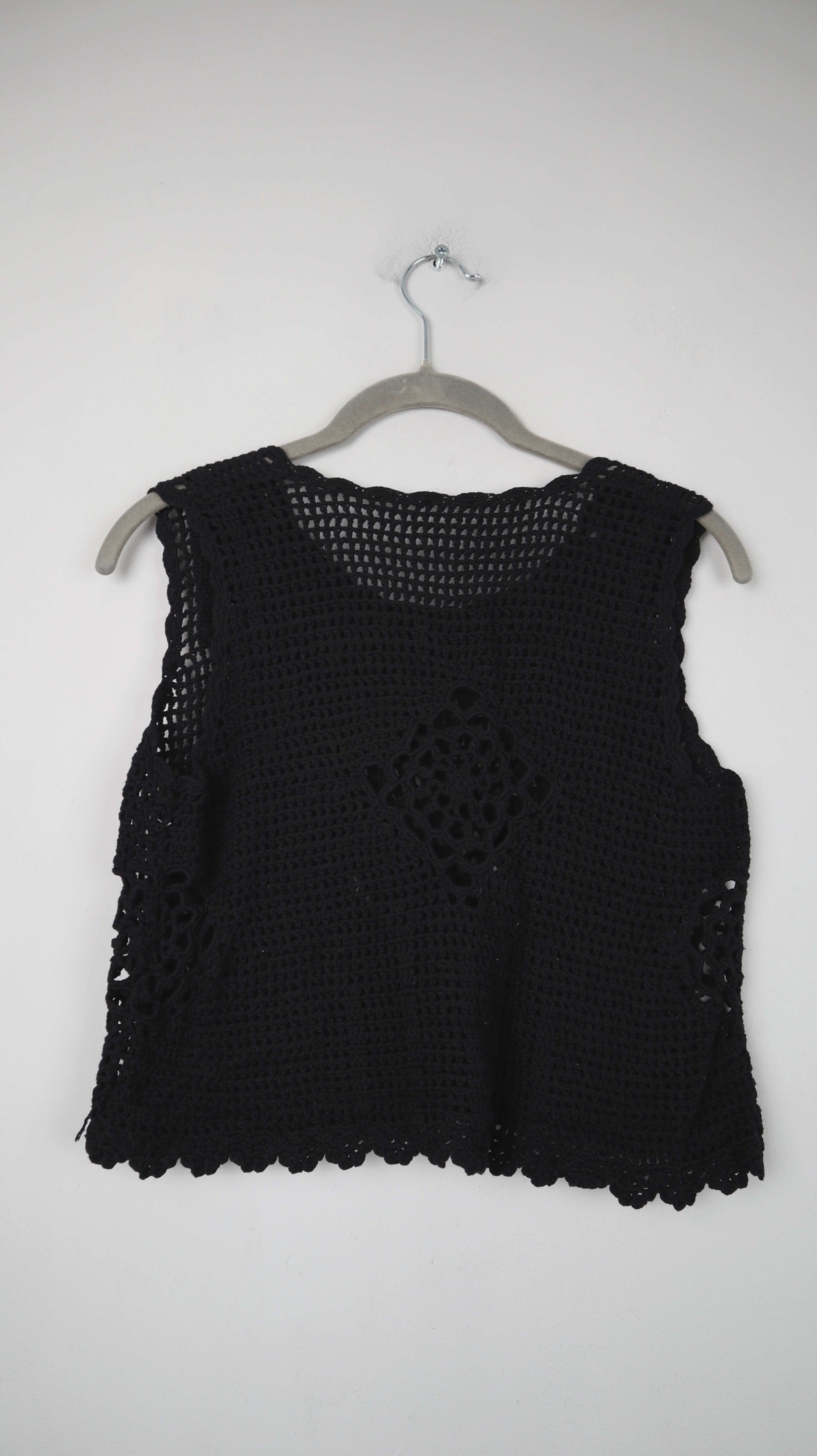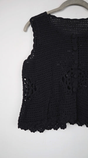 Deerberg Weste klein schwarz Strickweste geflochten 38 M Hippie Bohemian