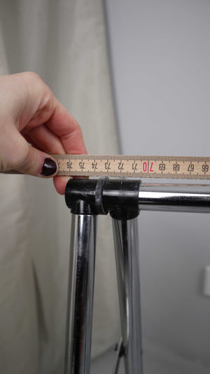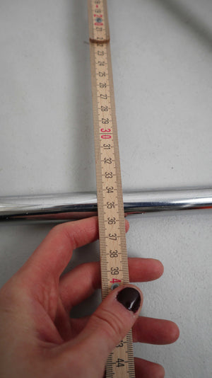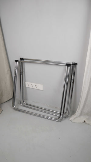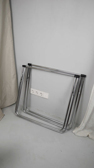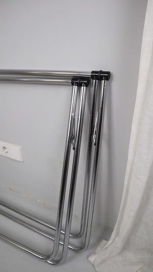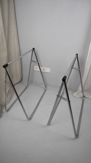 Set von zwei Tischböcken aus Chrom. Höhe 68 cm bei ausgeklappten Zustand, Breite 76 cm. Plus Versand