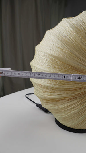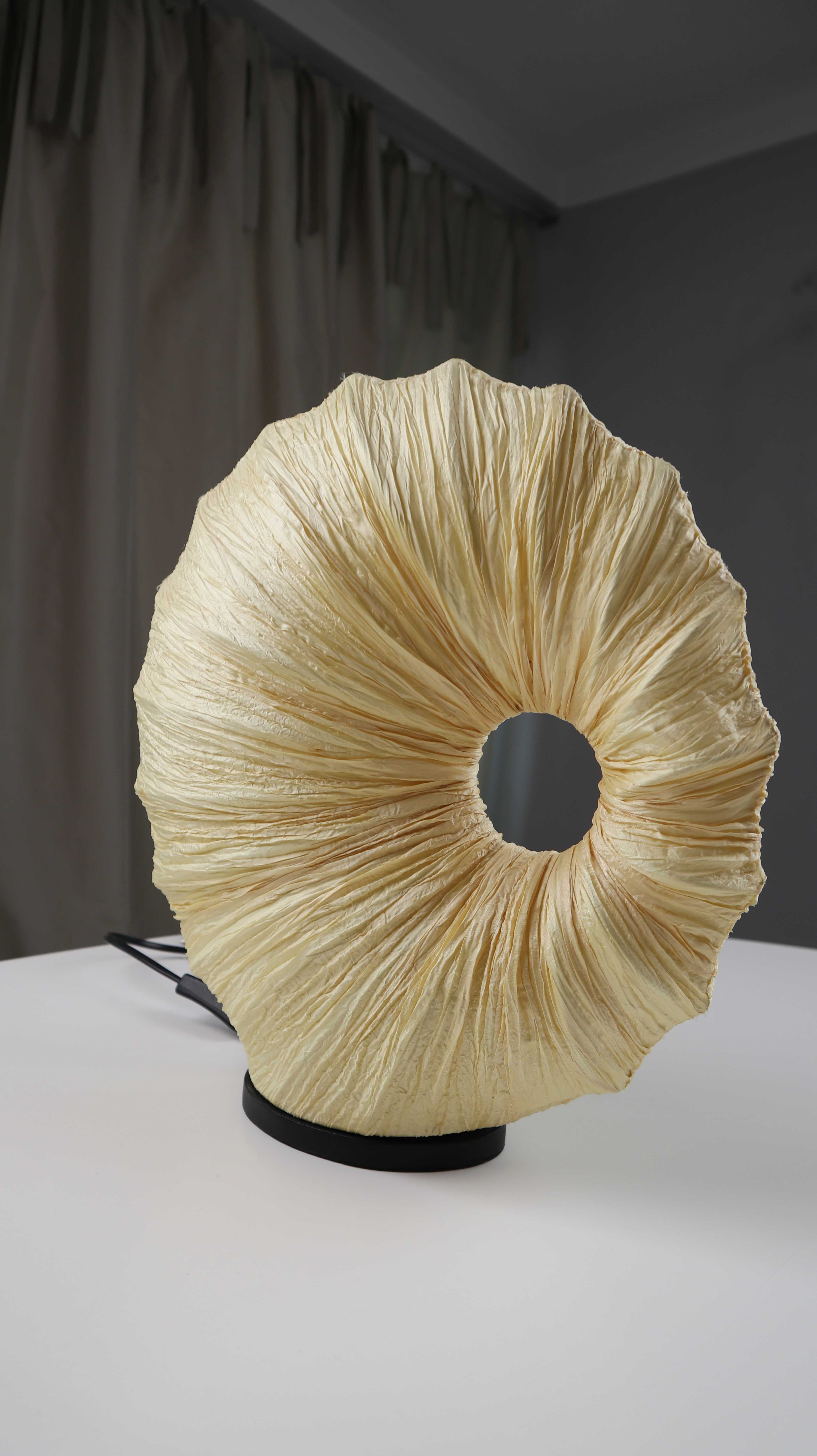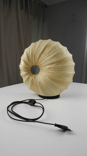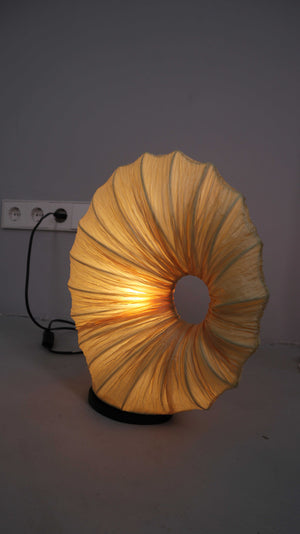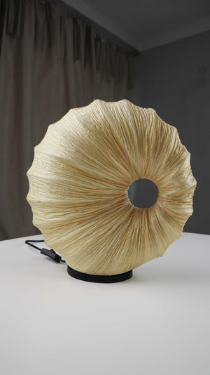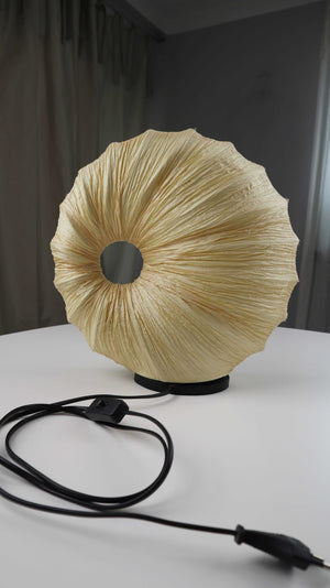 Beige Tischlampe in einer runden Muschelform. Plus Versand