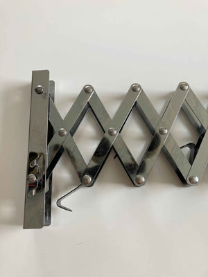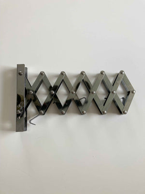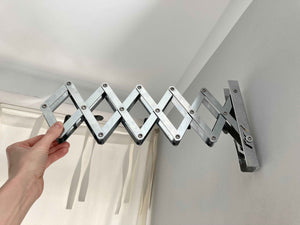 Eine Wandgarderobe oder ein faltbarer Arm für den Wäscheraum oder die Terrasse. Unten kann man kleine Harken ausklappen. Plus Versand