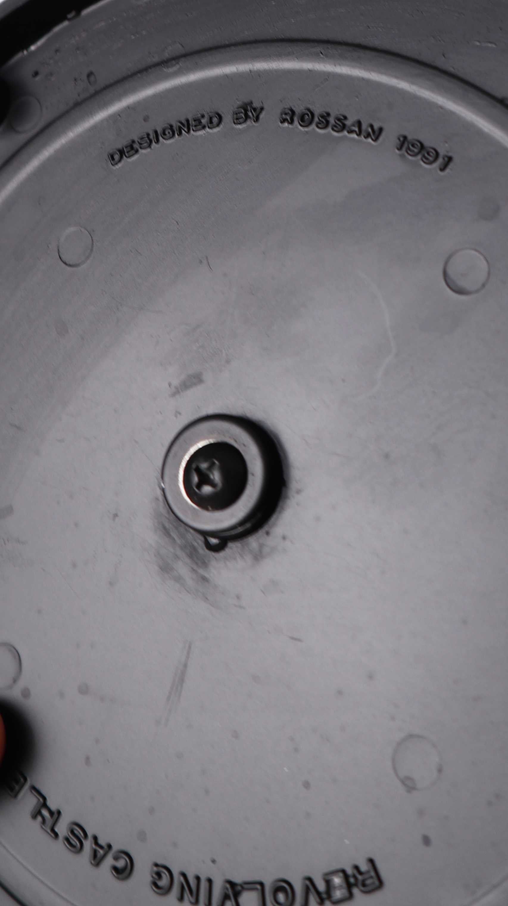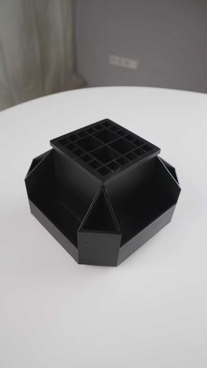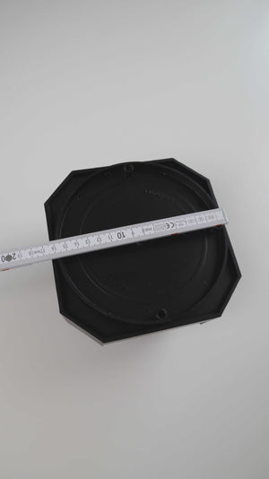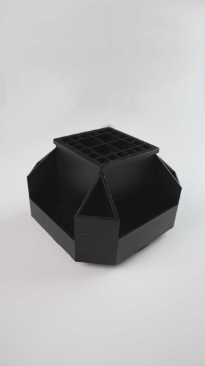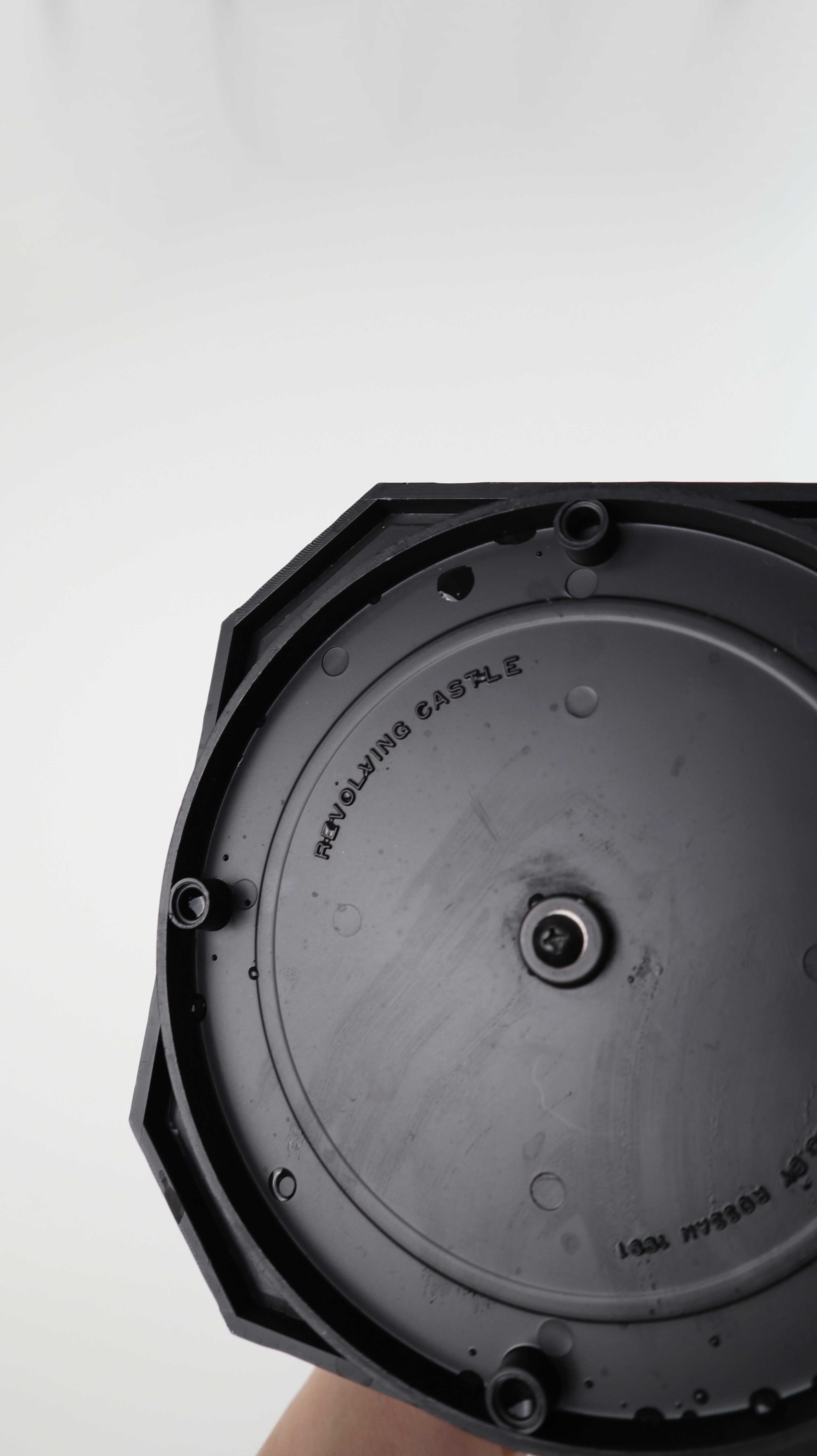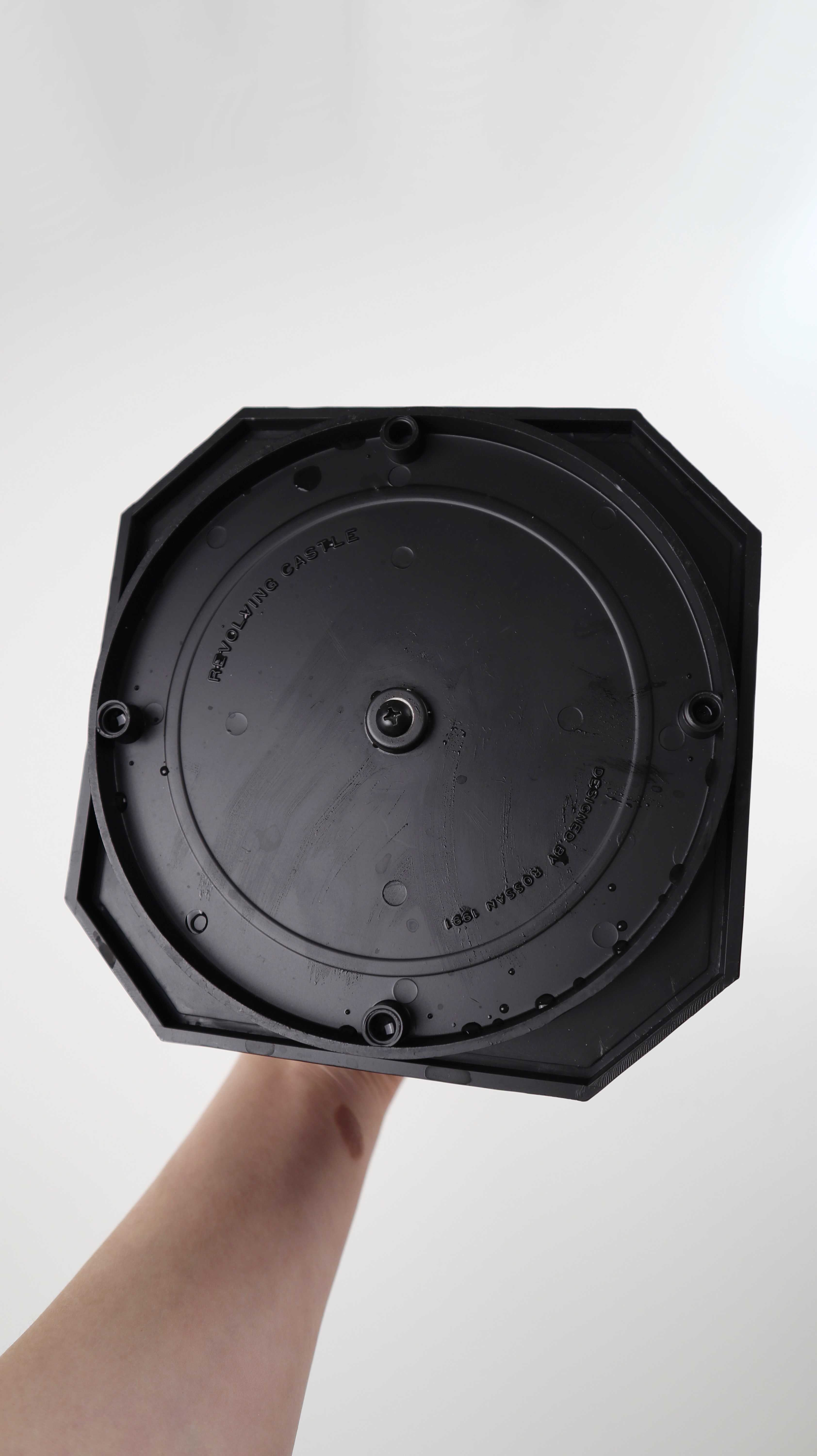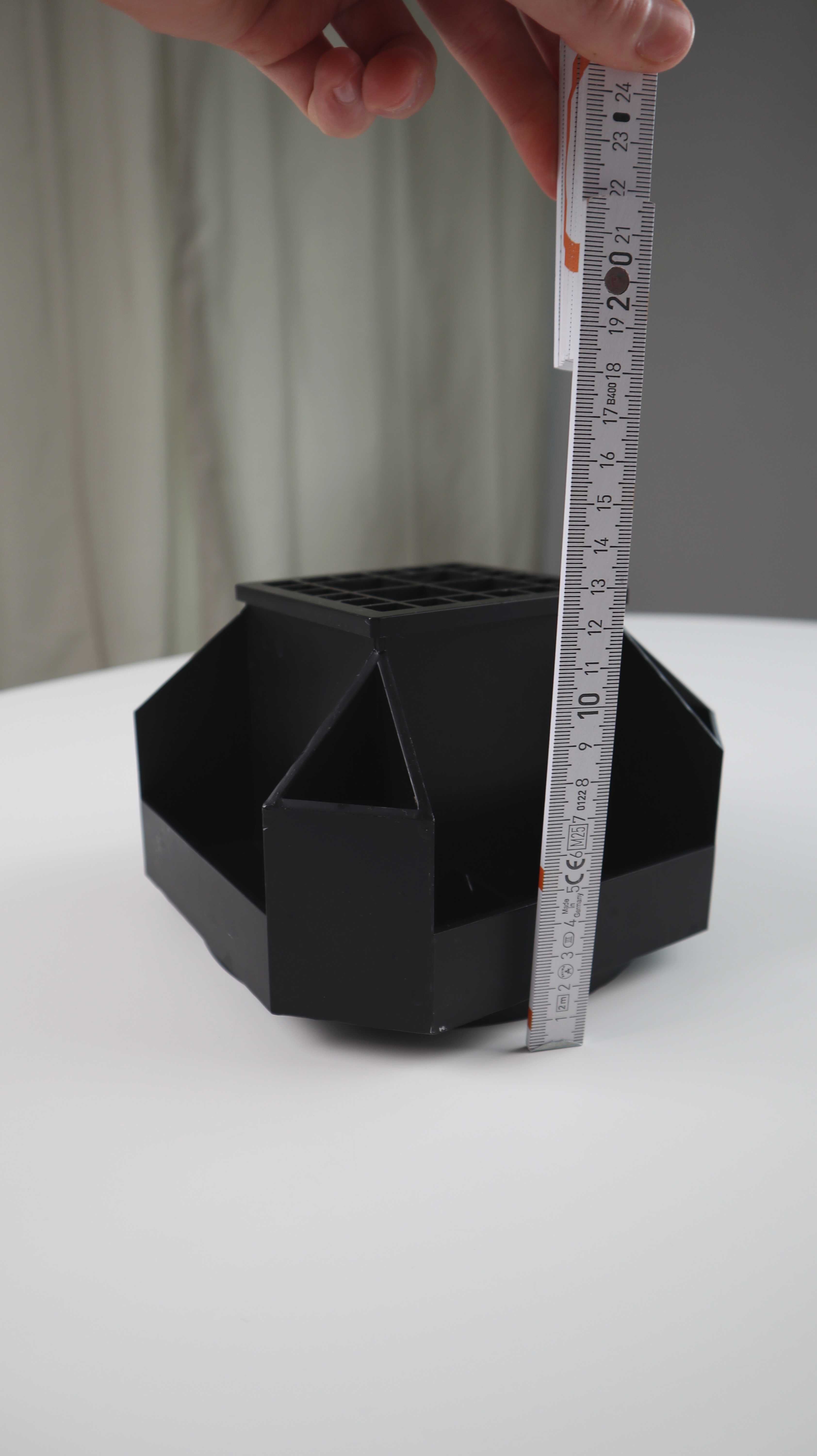 Schwarze Box aus Kunststoff von Designed by Rossan 1991 zum drehen. Plus Versand