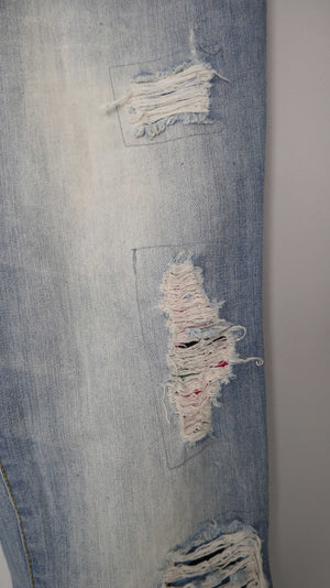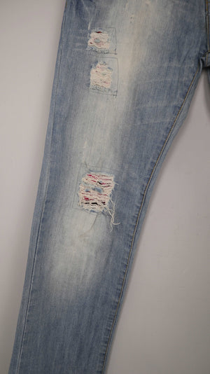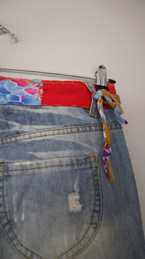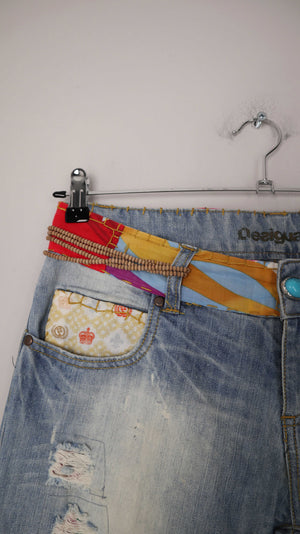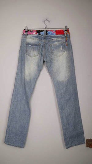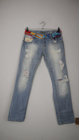 Desigual Jeans Hose straight fit blau washed Hippie bestickt 40 L
