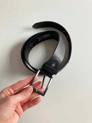 Diablo Gürtel schwarz Ledergürtel Schnalle silber basic