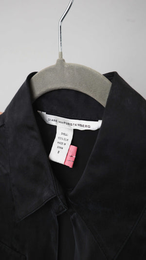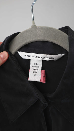 Sehr schöne, schwarze Bluse aus Seide von Diane von Fürstenberg. Sie ist in Größe 8 und passt einer 38 M. 44 cm Achselweite und 60 cm Länge. Plus Versand
