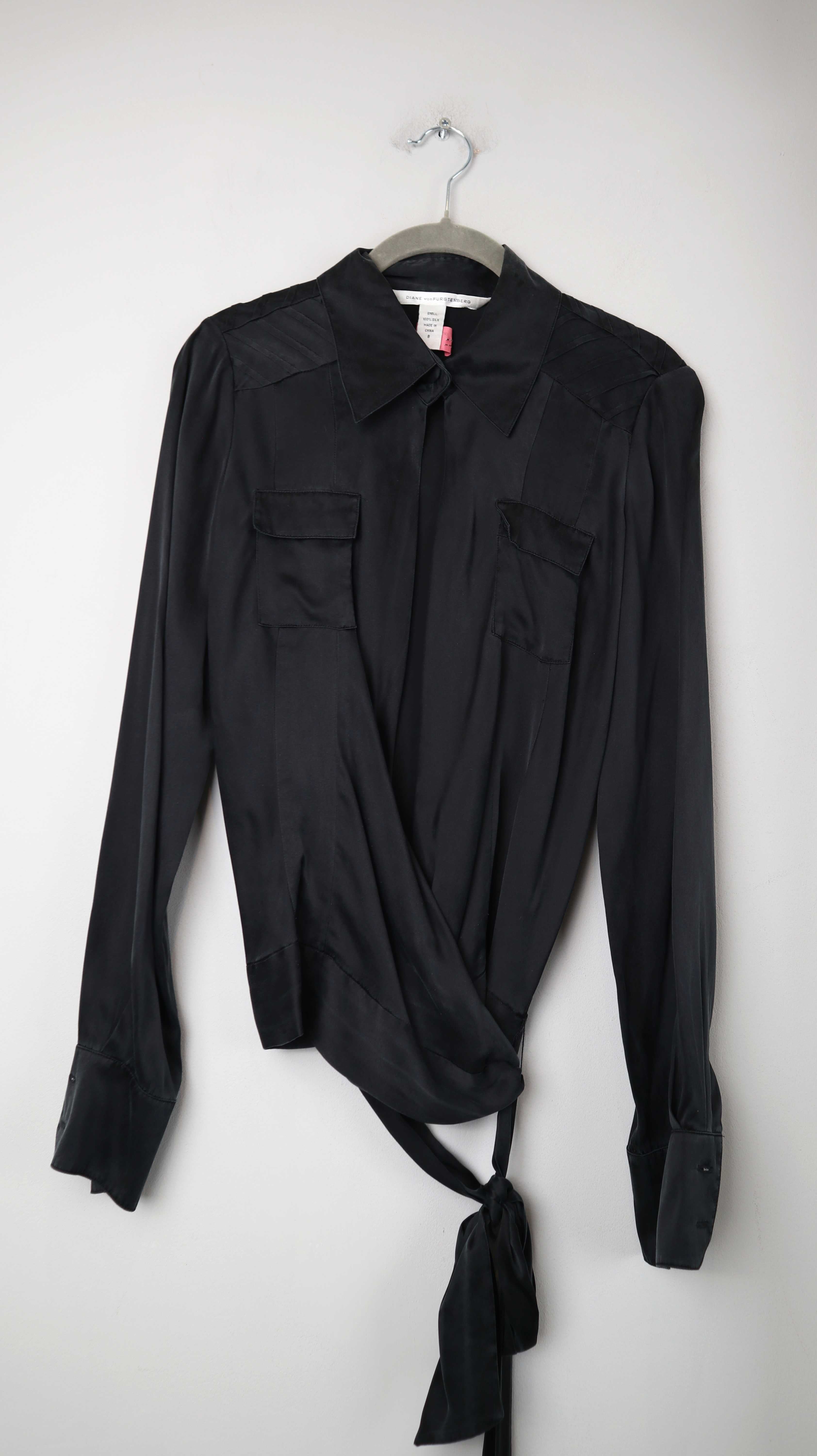Diane von Fürstenberg Bluse schwarz Seidenbluse Seide 38 M 8 gebunden