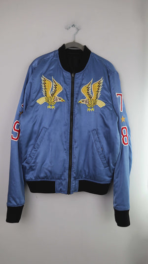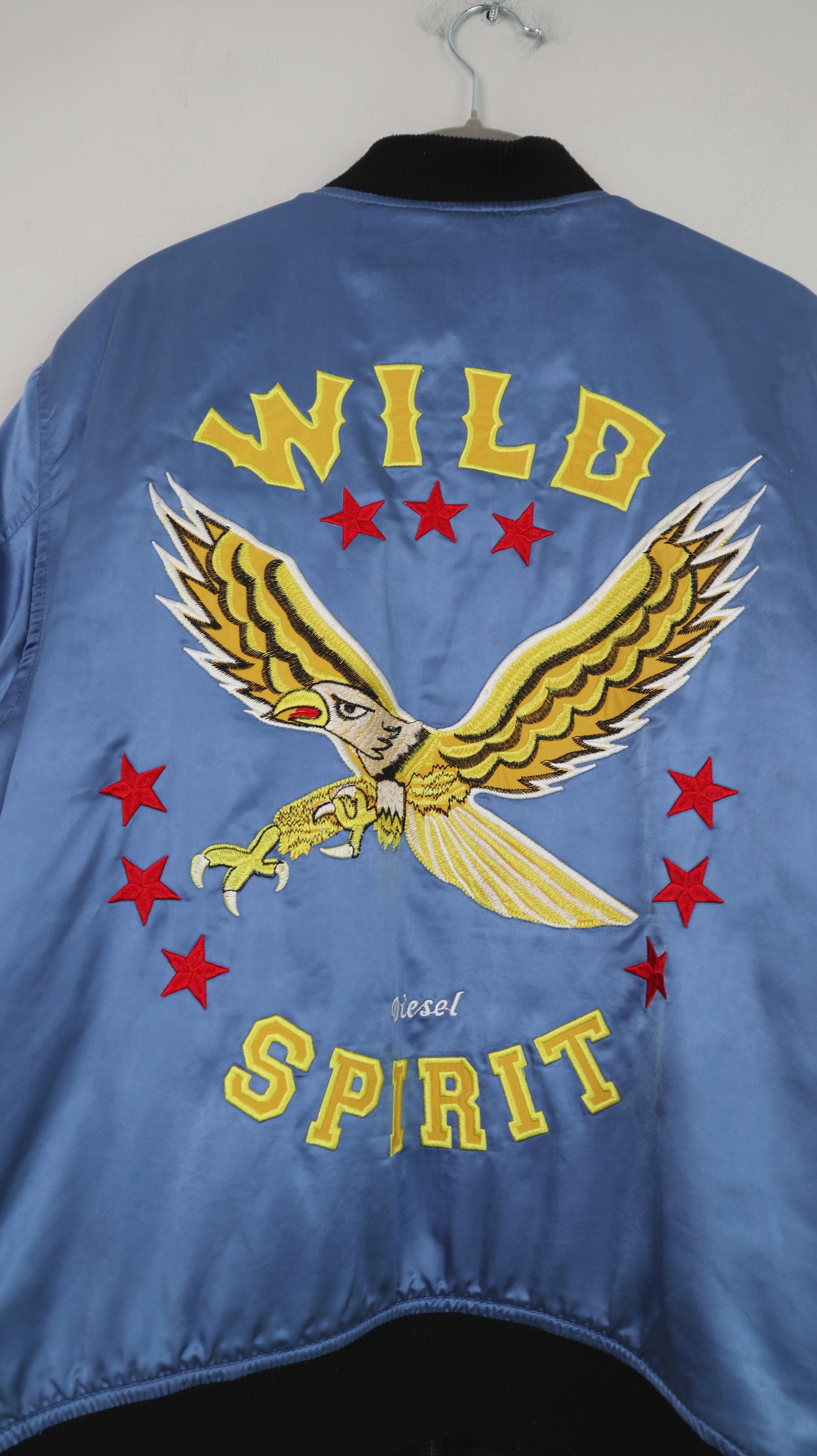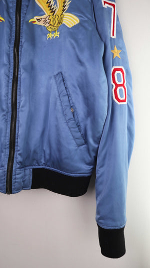 Diesel Blouson Blau Wendejacke Backprint 38 M bestickt Schwarz Wild Spirit