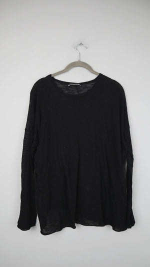 Drykorn Shirt Pullover Oberteil schwarz 40 L Leinen Leinenshirt Longsleeve