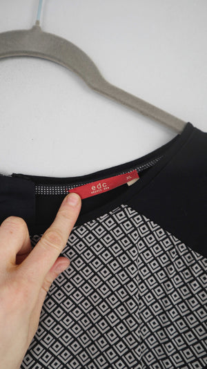 Schwarz weißes Kleid von EDC in XL aus Stoff. Es passt einer Größe 40 L super, XL würde ich nicht empfehlen. 47 cm Achselweite und 85 cm Länge. Plus Versand
