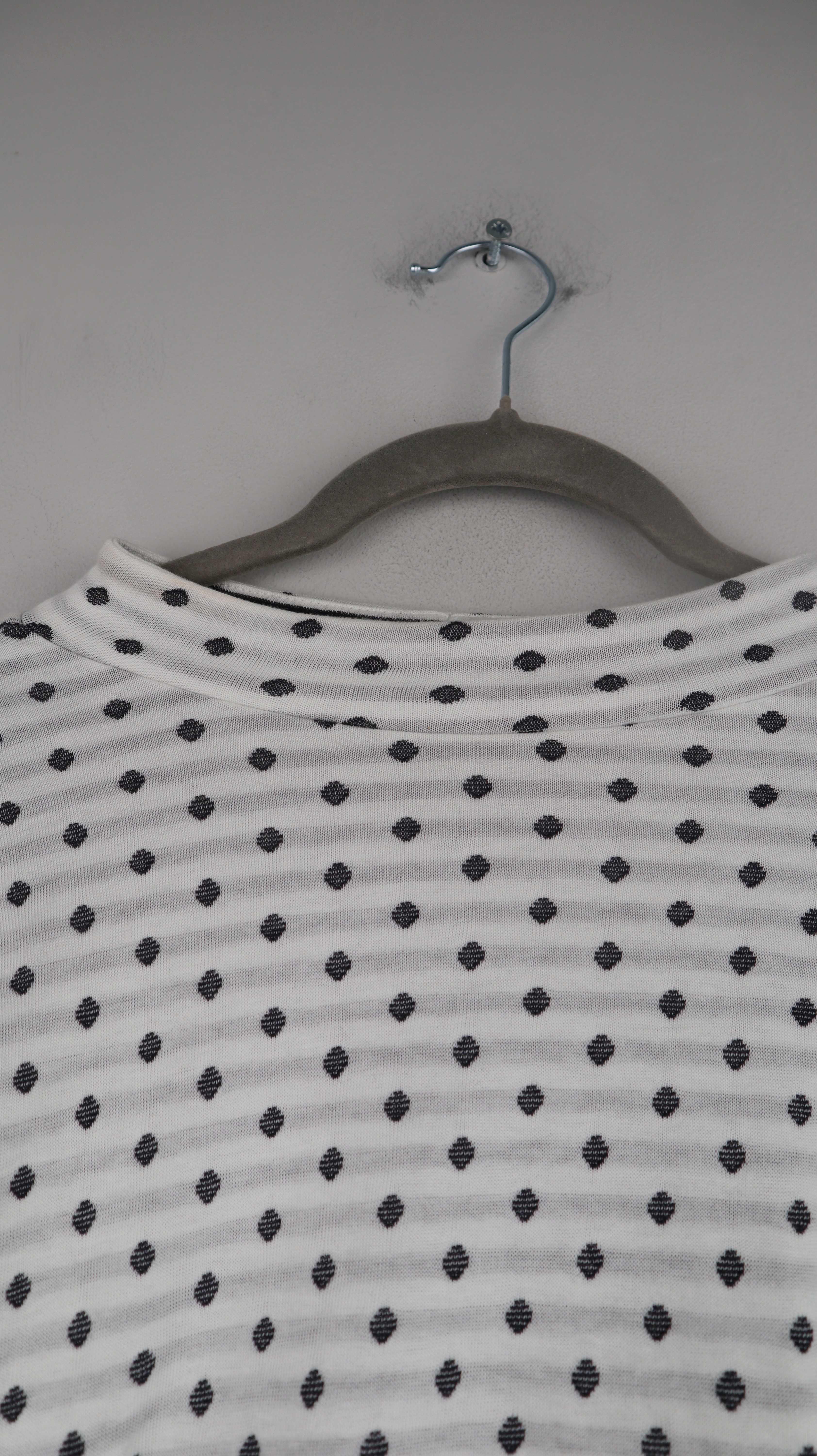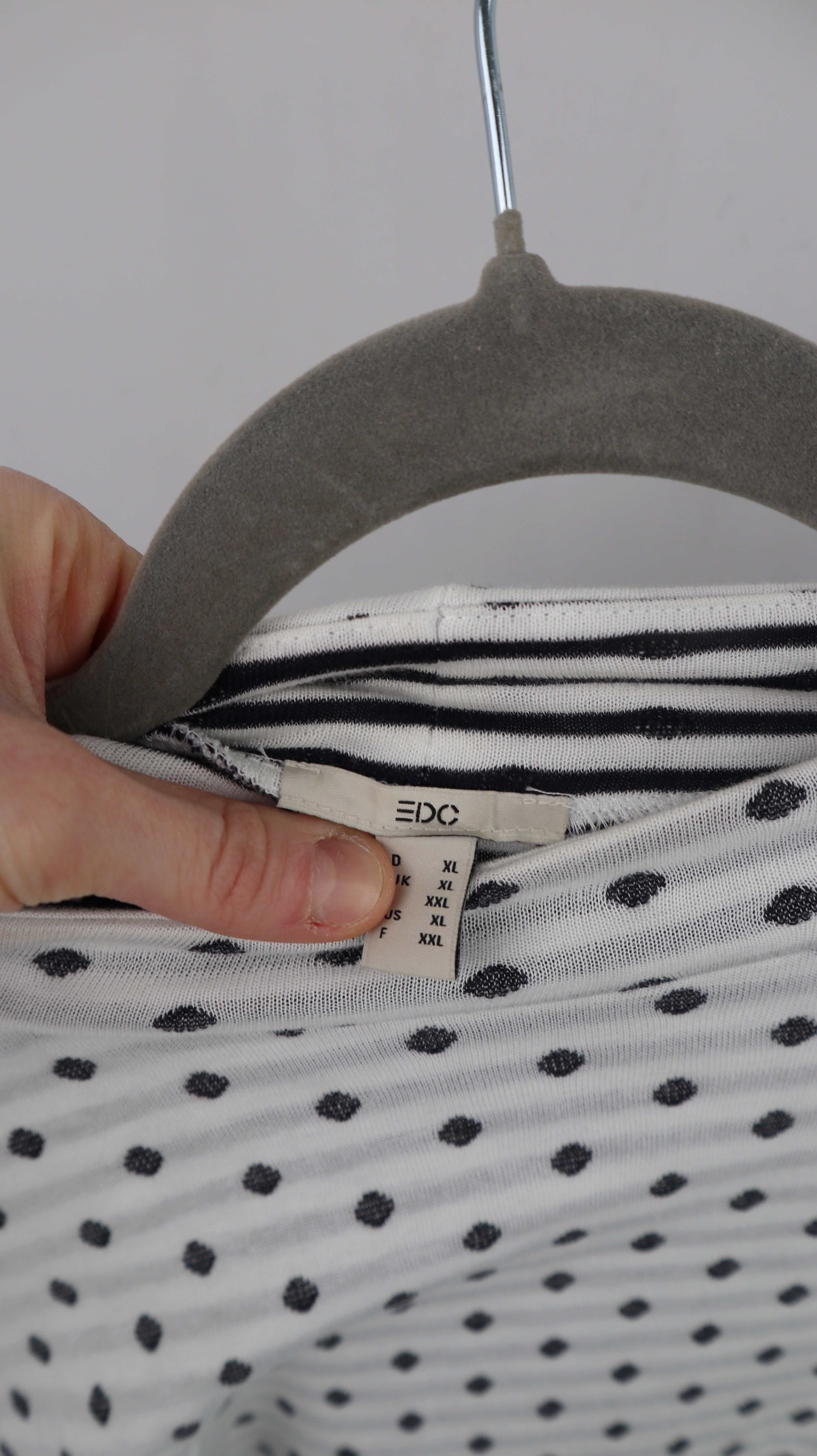 EDC Shirt Longsleeve Pullover Weiß XL gepunktet schwarz gestreift