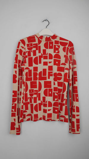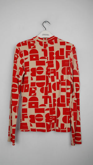 Edited Rolli Rollkragenpullover rot beige Muster 34 XS slim Longsleeve