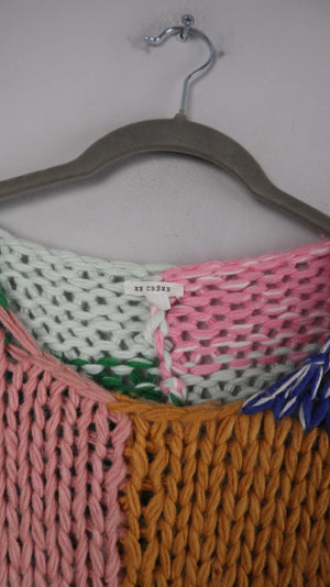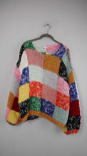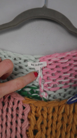 En Creme Pullover Sweater bunt Strickpullover gestrickt kariert 38 M / L