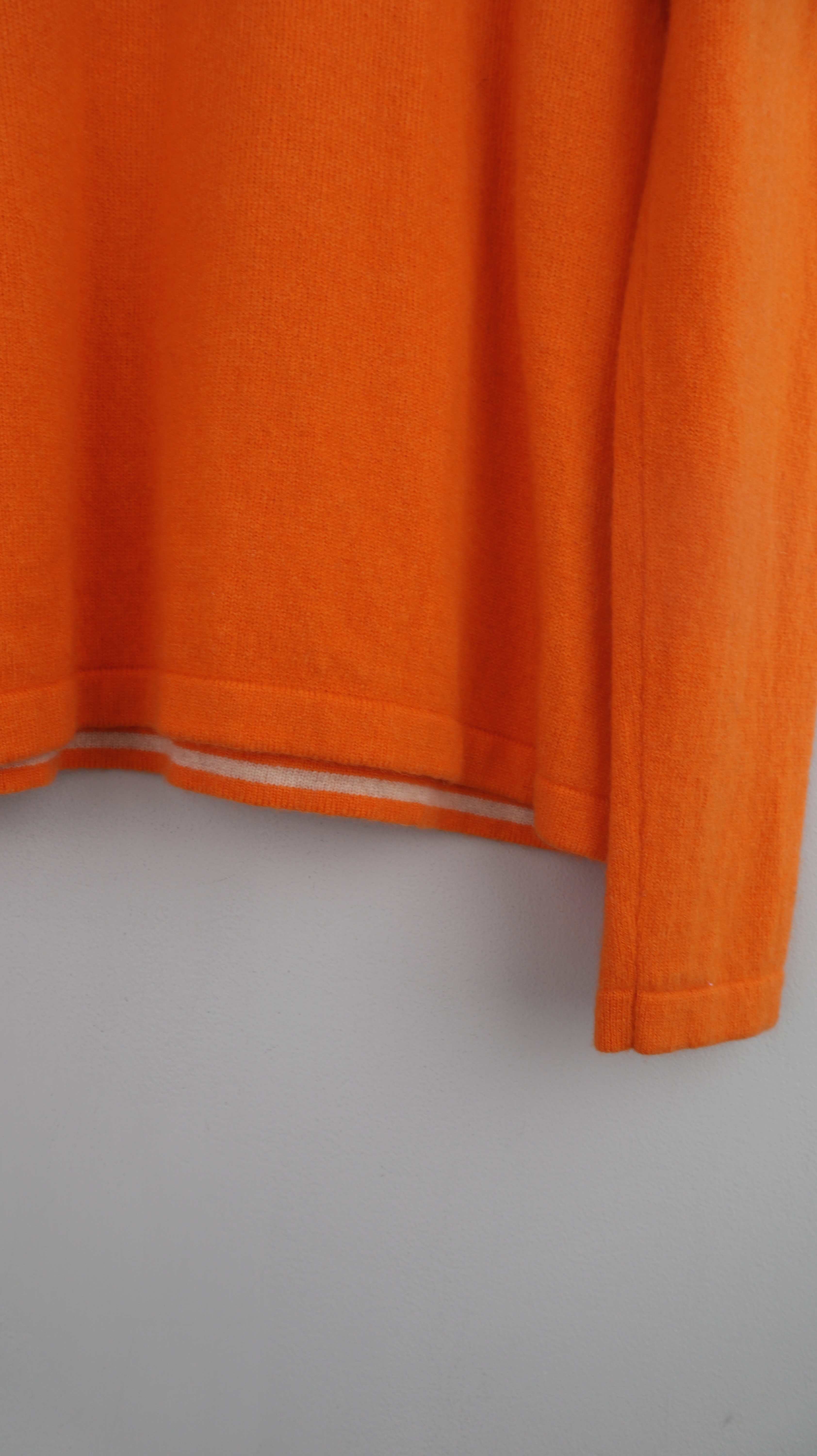 Einfarbig orangener Pullover von Esisto in 40 L. 46 cm Achselweite und 57 cm Länge. Plus Versand