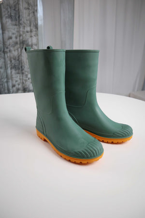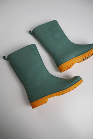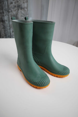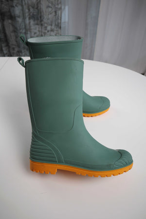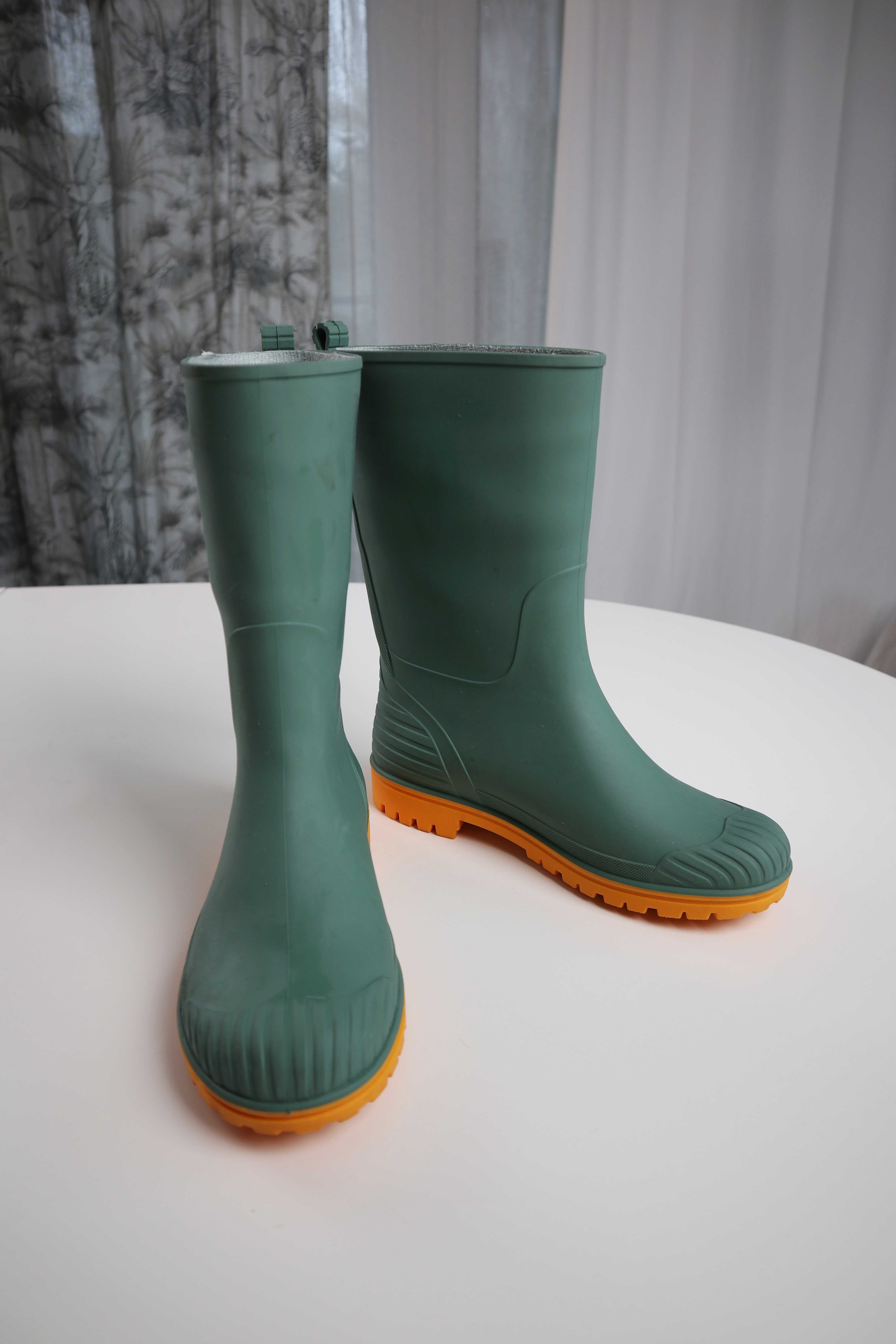 Grüne Gummistiefel mit Orangener Sohle in einem neuwertigen Zustand. Von Esmara, Größe 38. Plus Versand