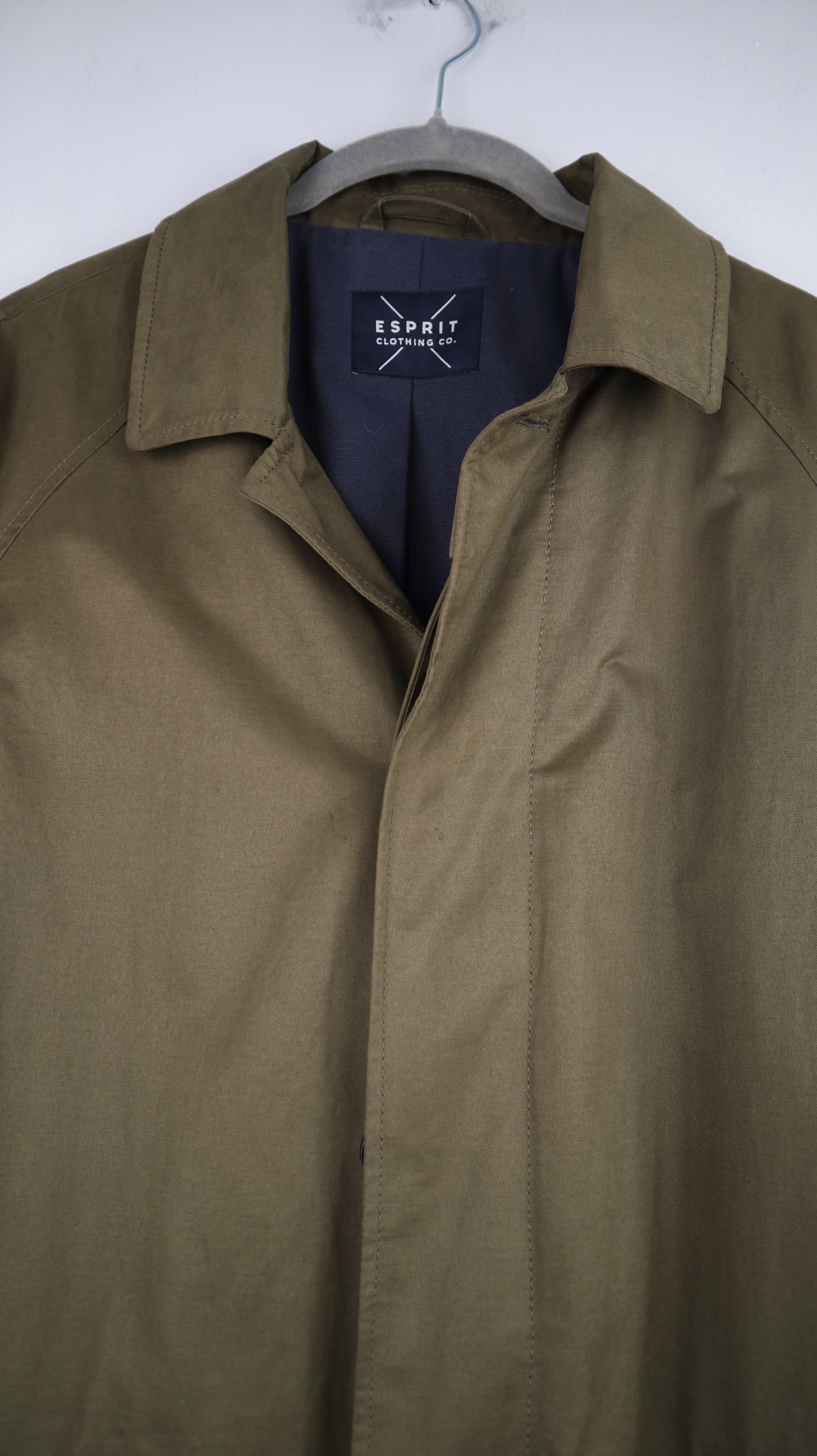 Schlichter, grüner Trenchcoat für Herren in M von Esprit. 50 cm Achselweite und 84 cm Länge. Plus Versand
