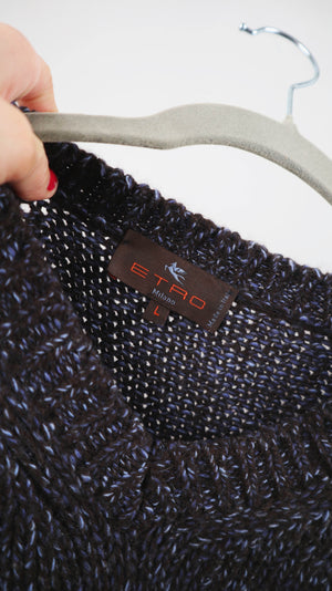 Blau Brauner Strickpullover in L von Etro. Er ist mit Merinowolle und Cashmere, made in italy. 65 cm Achselweite und 61 cm Länge. Plus Versand