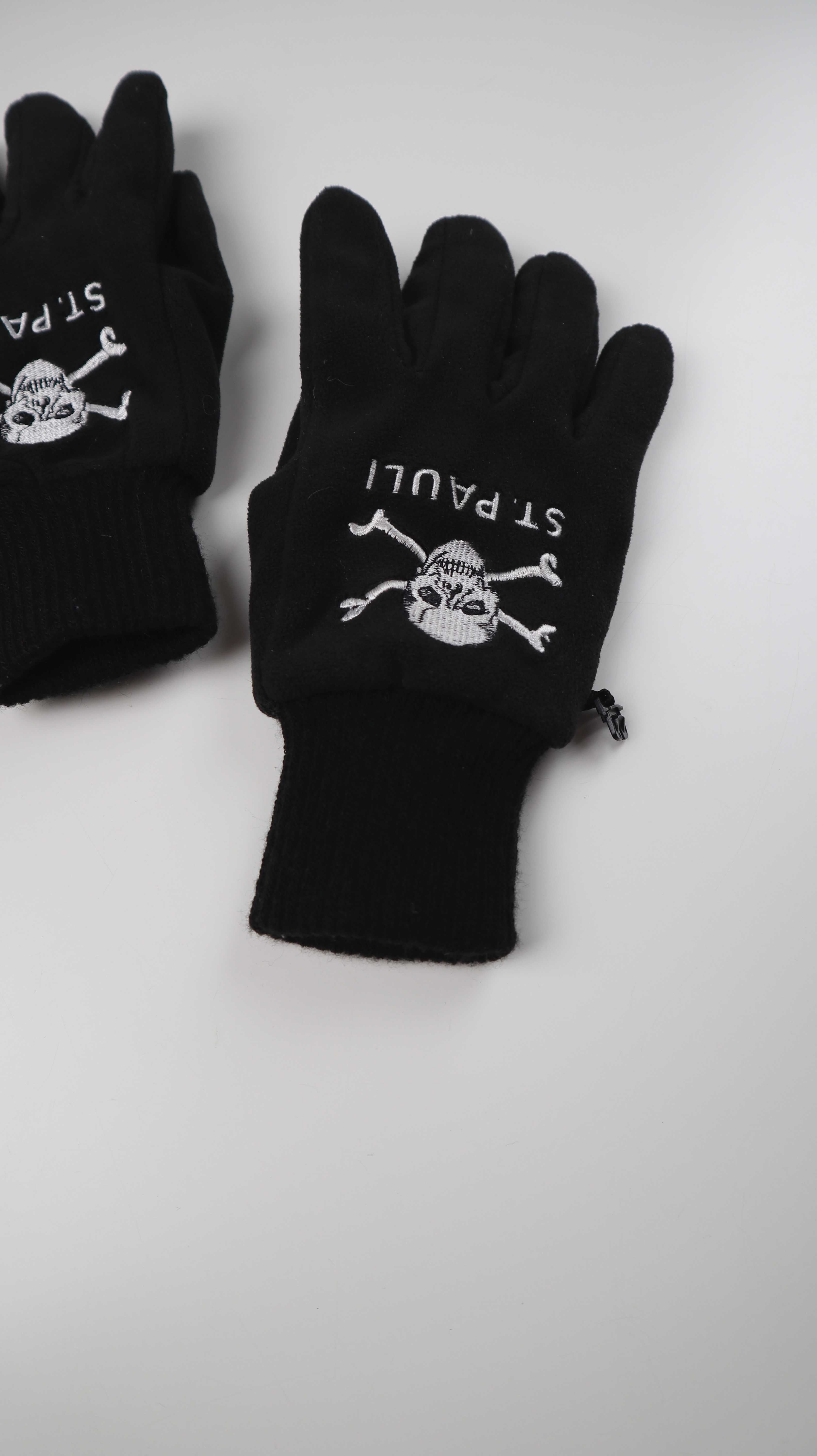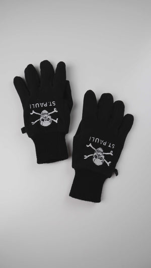 Schwarze Handschuhe mit einem kleinen Haken zum Verbinden vom FC St. Pauli. Plus Versand