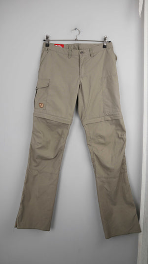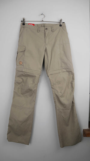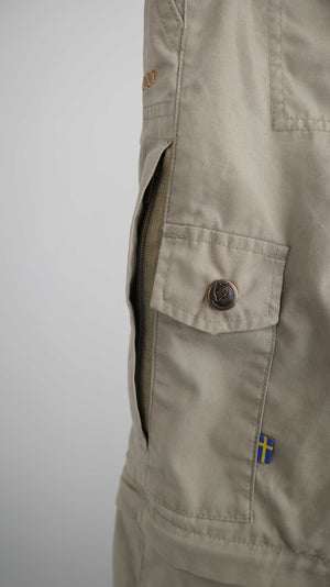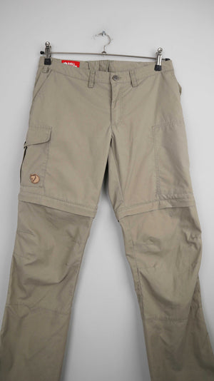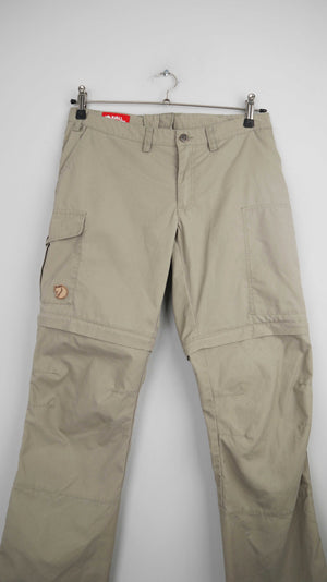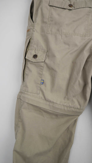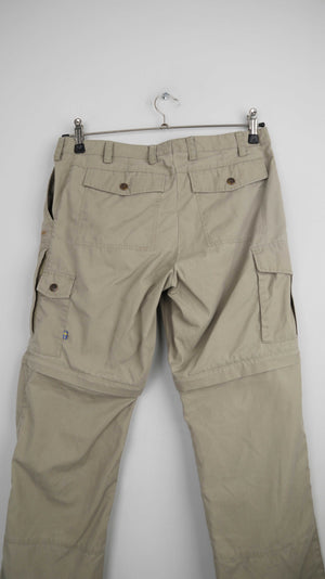 Beige Hose von Fjällräven, die man auch in eine Shorts umwandeln kann. Das Modell ist G-1000 in 40 L. 43 cm Bundweite, 22 cm Schritthöhe und 81 cm Innenbeinlänge. Plus Versand