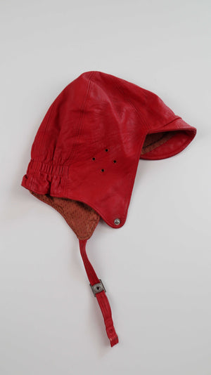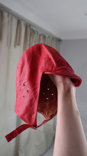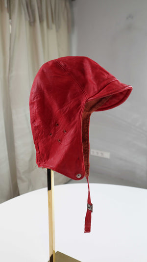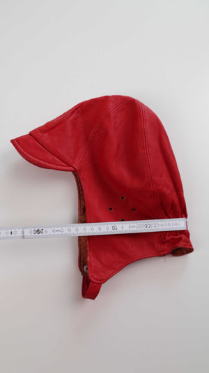 Rote unisex Pilotenmütze / Oldtimermütze aus Leder. Plus Versand