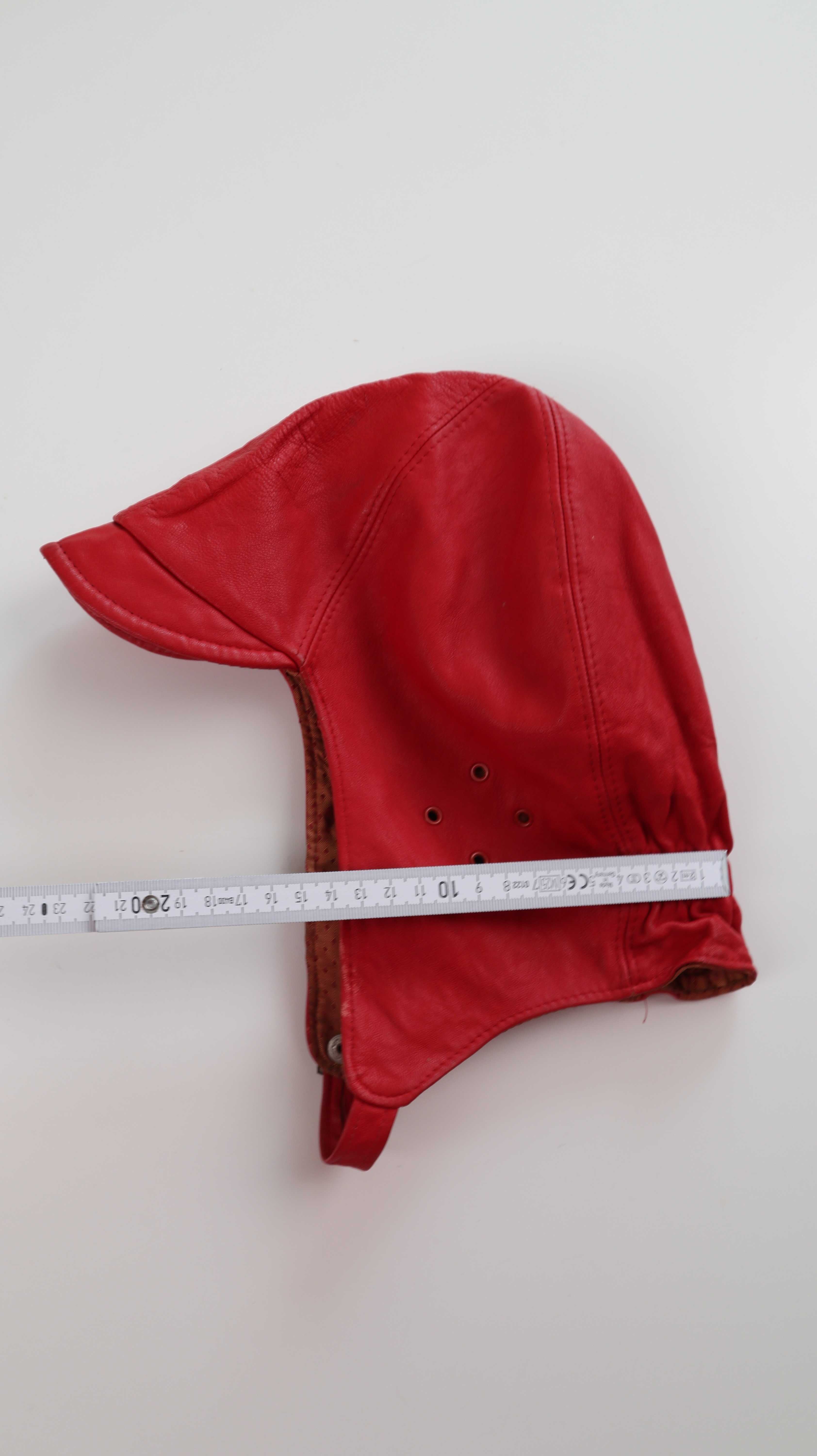 Fliegermütze Leder rot Vintage Pilotenmütze Motorradmütze Oldtimermütze M