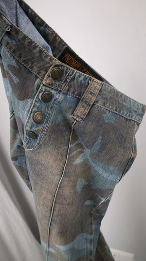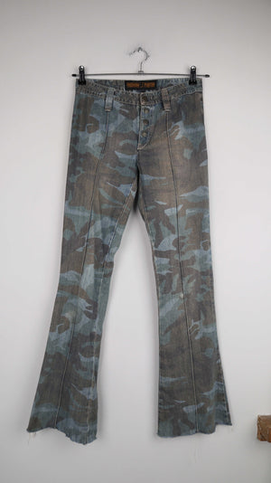 Freeman Porter Hose Jeanshose Schlaghose 36 S Camouflage 90s Y2K