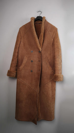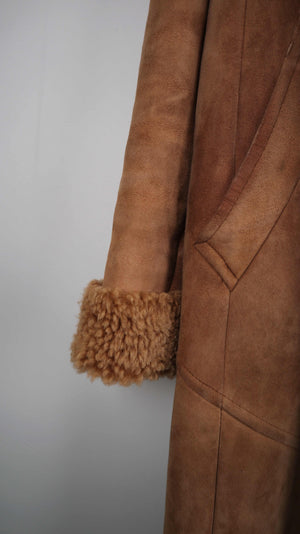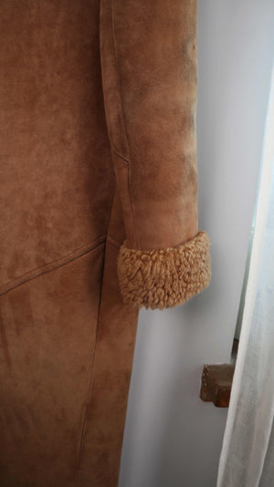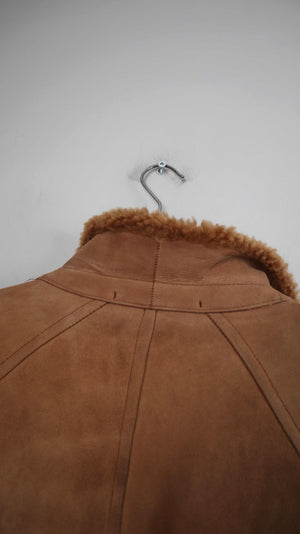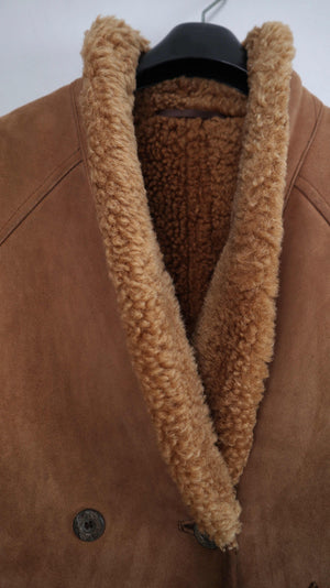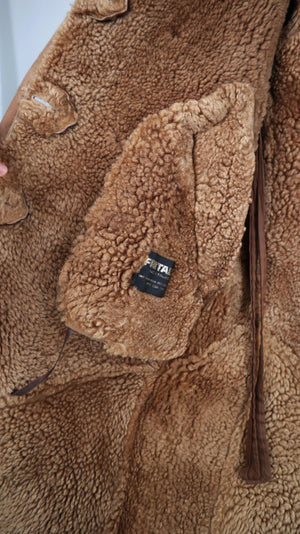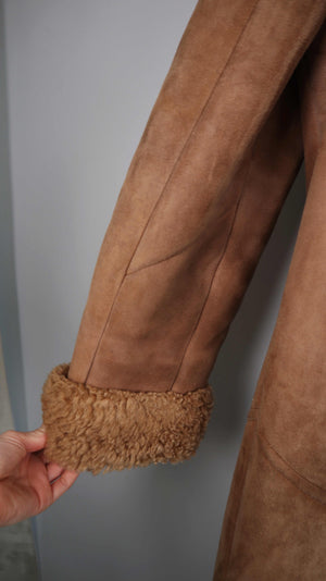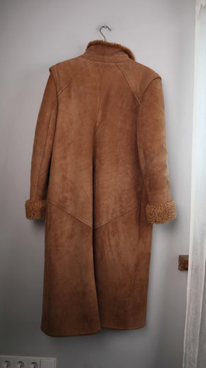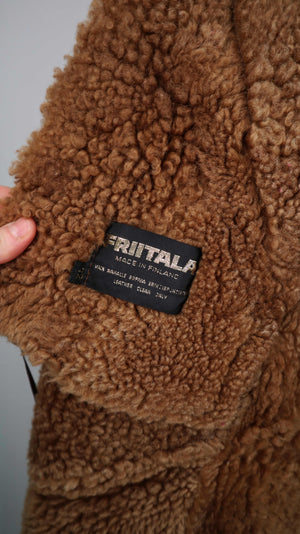 Friitala Made in Finland Mantel Lammfellmantel Braun gefüttert 42 XL Ledermantel