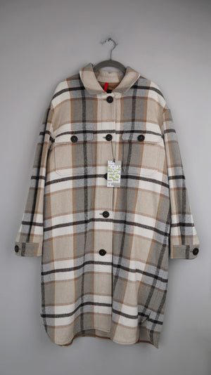 Fuchs Schmitt Jacke Neu Mantel kariert Creme 42 Beige Hemdjacke