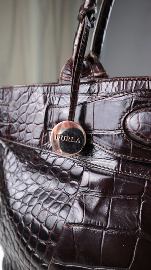 Furla Tasche Handtasche braun Ledertasche Shopper Schultertasche