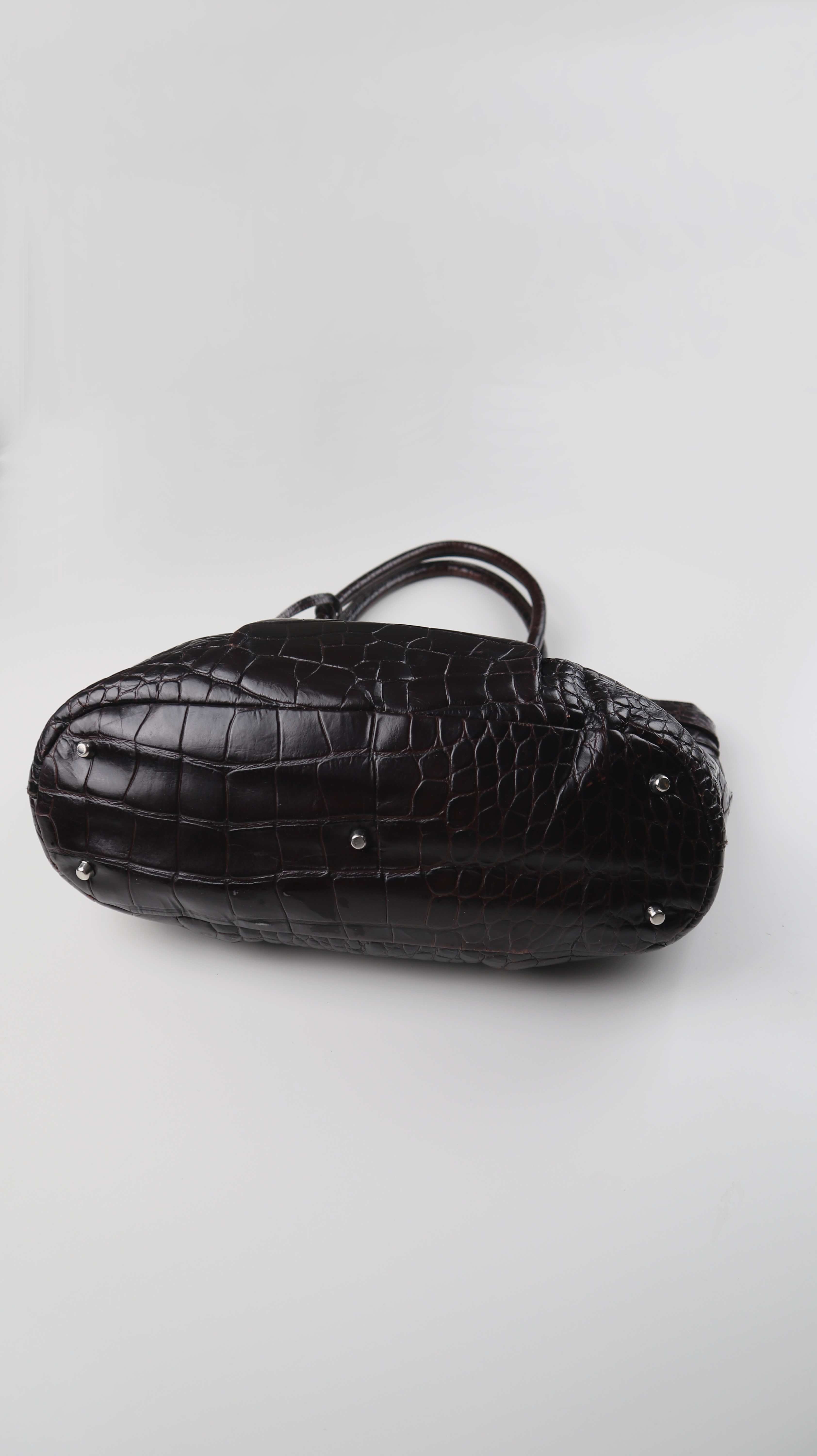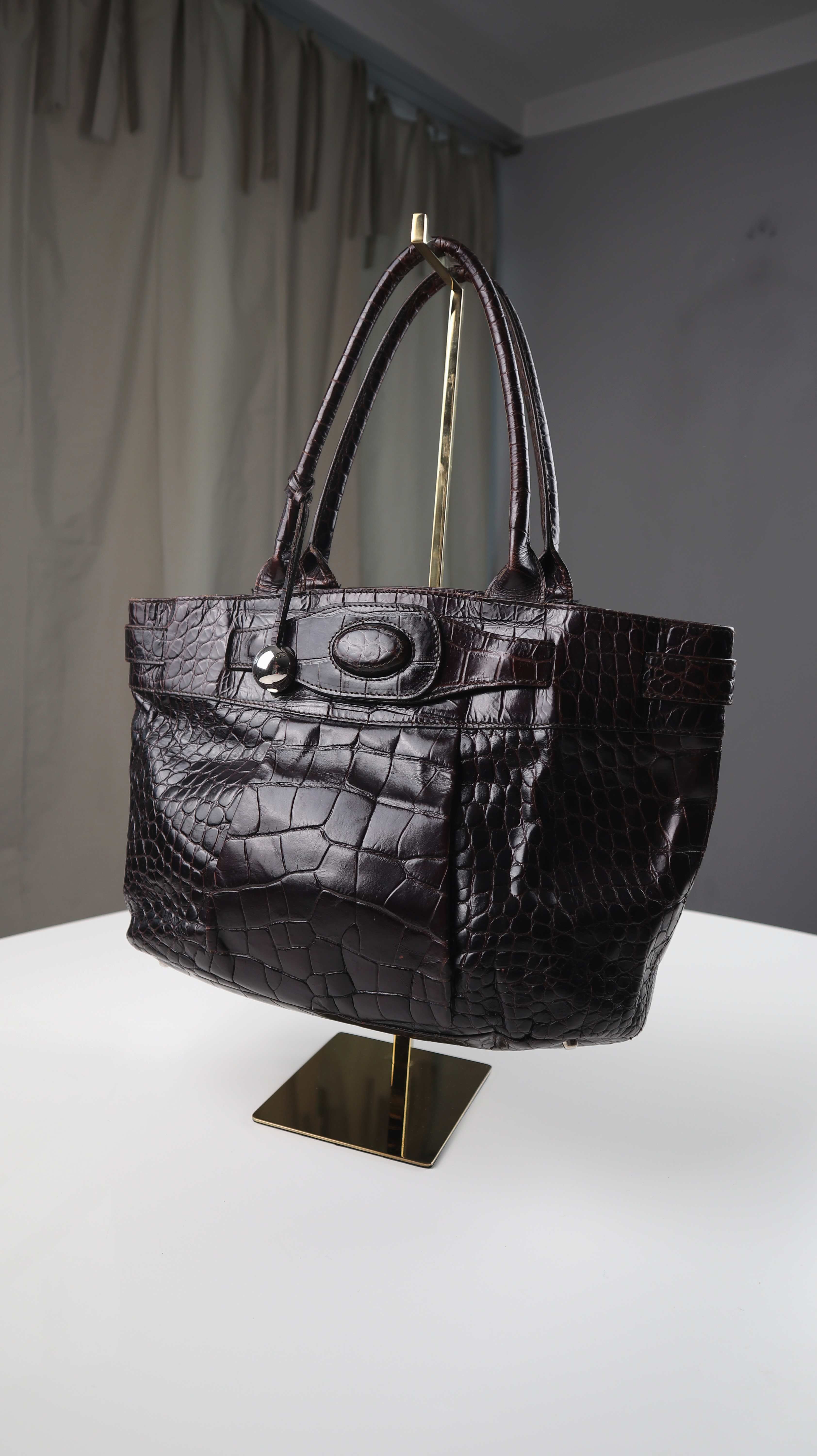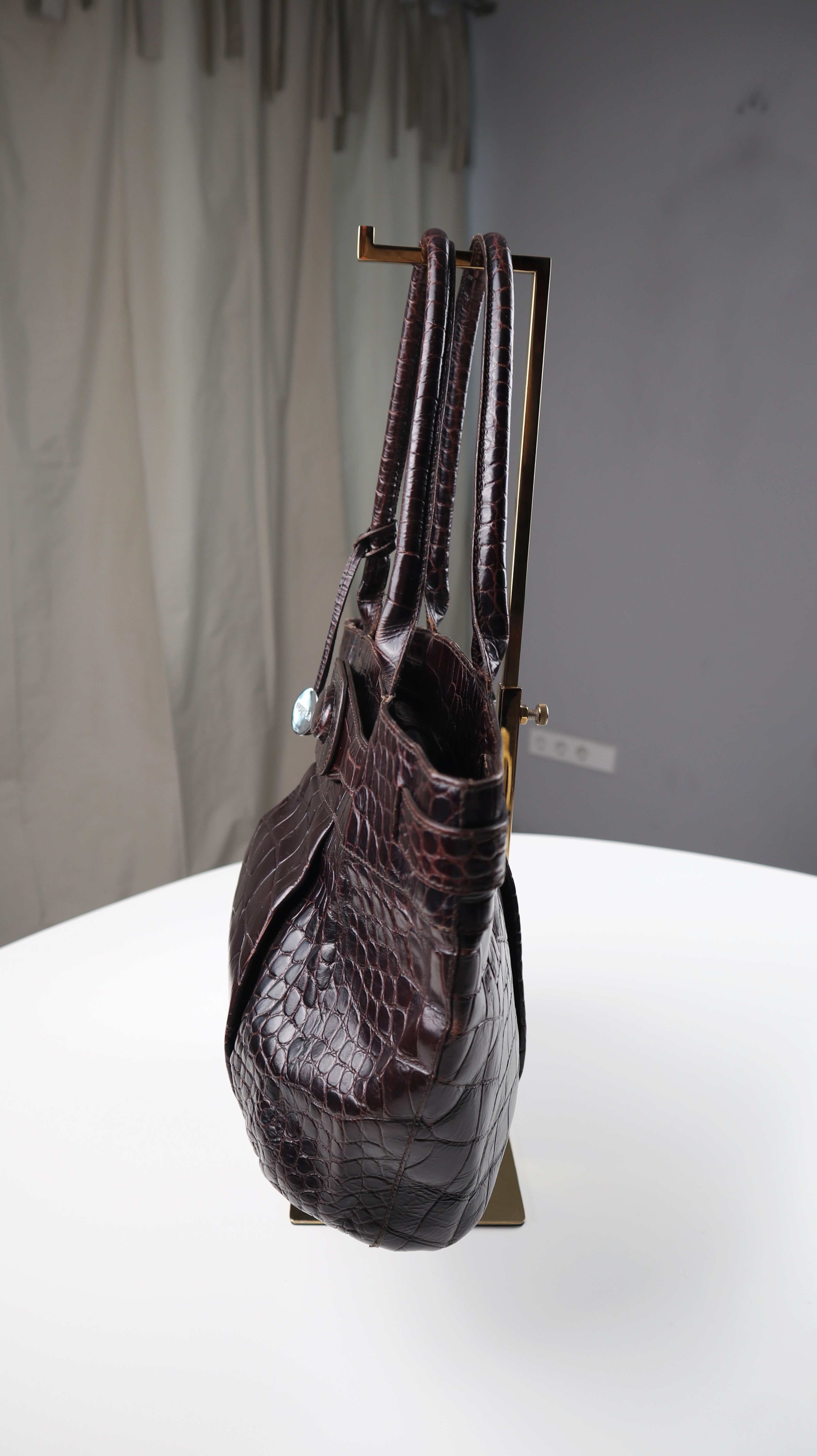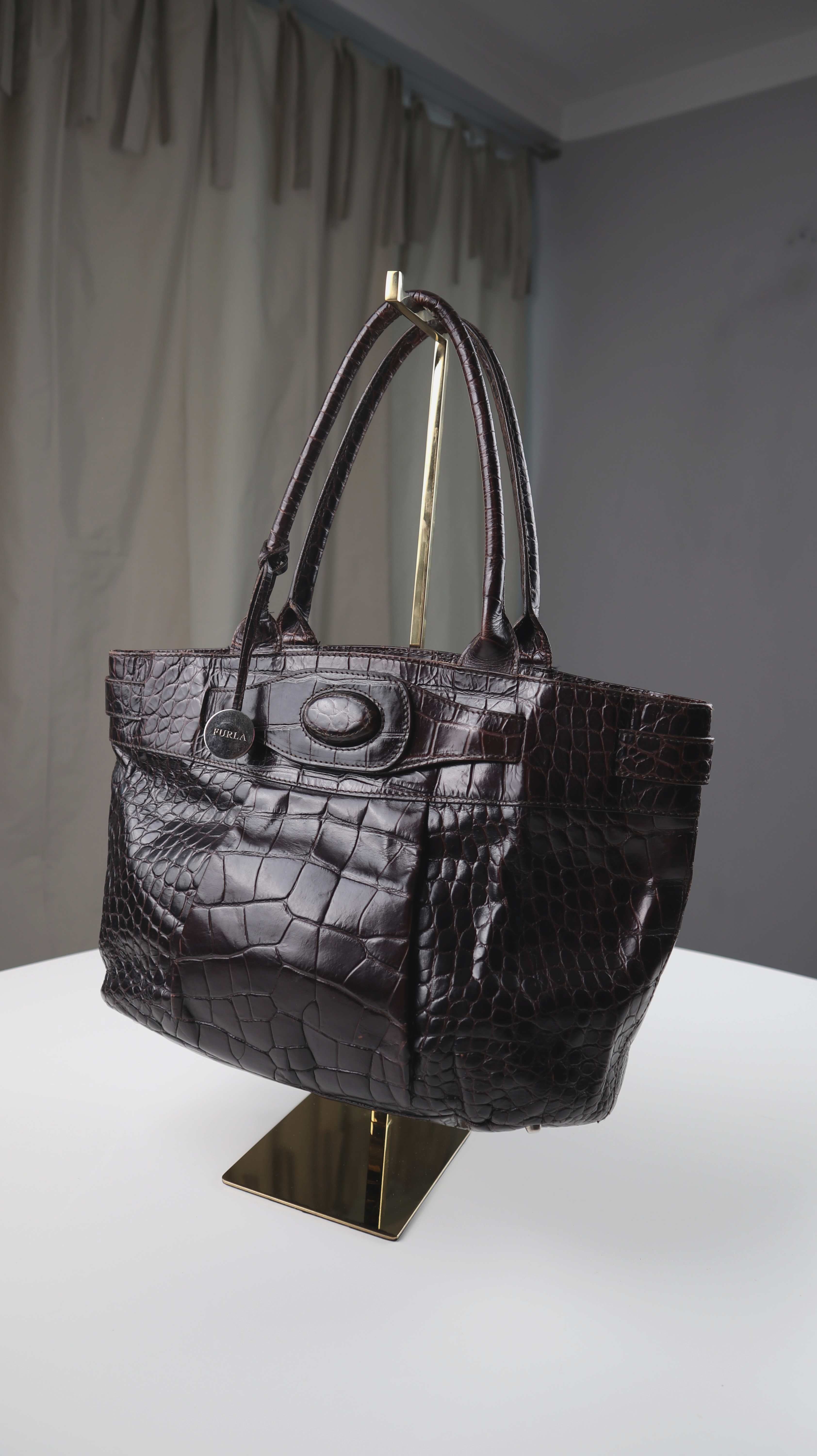Braune Handtasche von Furla aus Leder. Oben ist ein Magnetknopf als Verschluss. Plus Versand