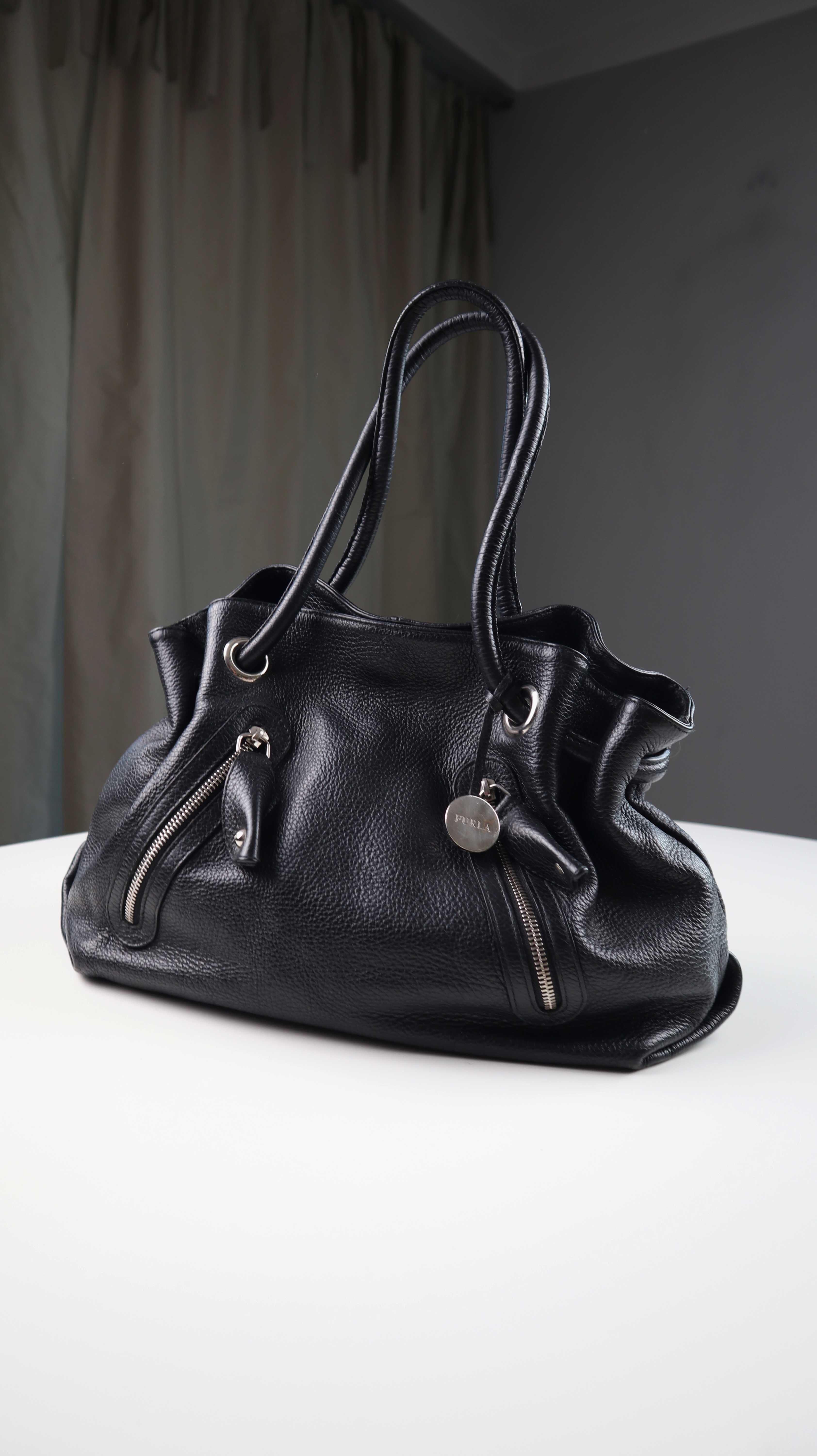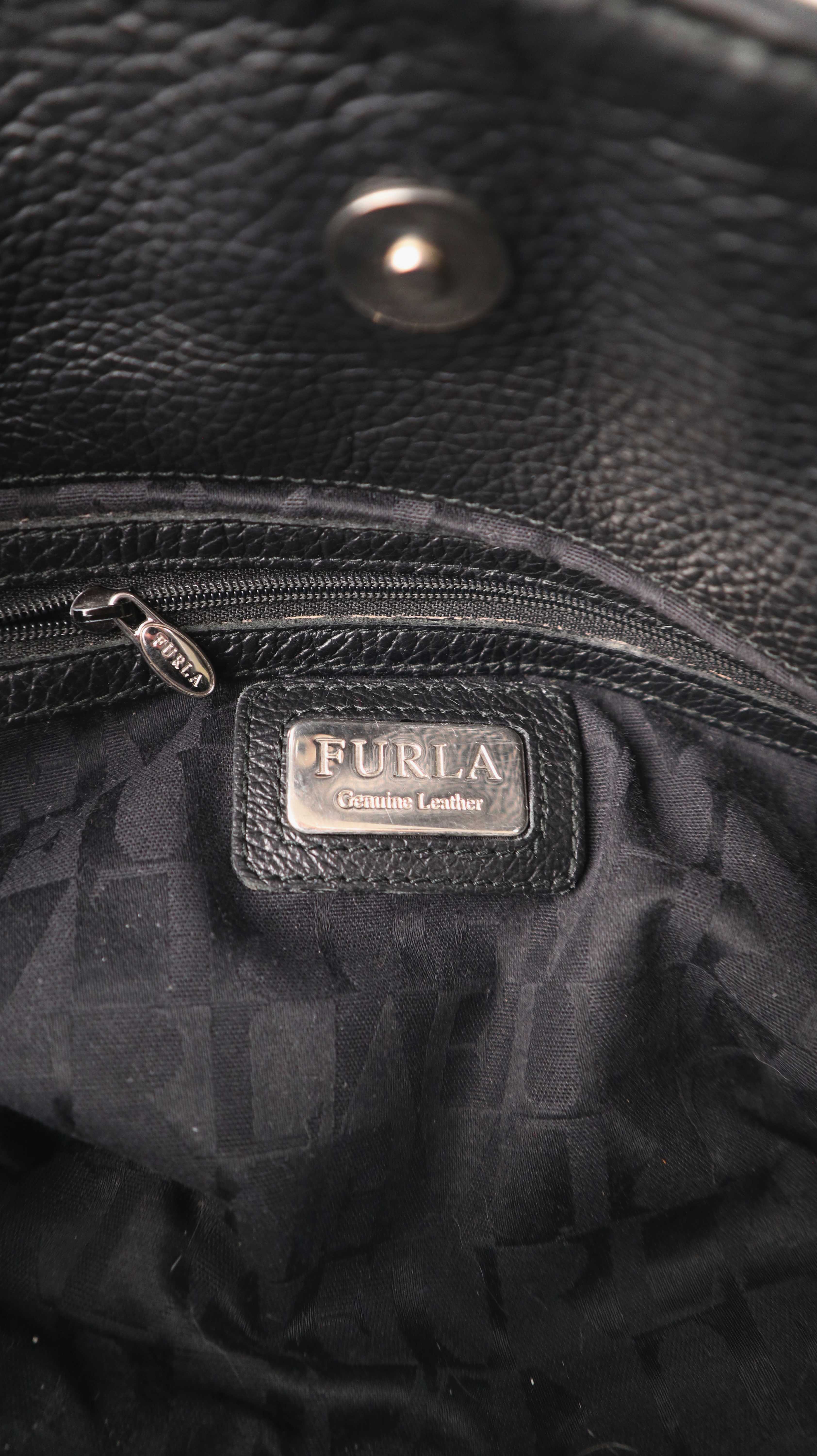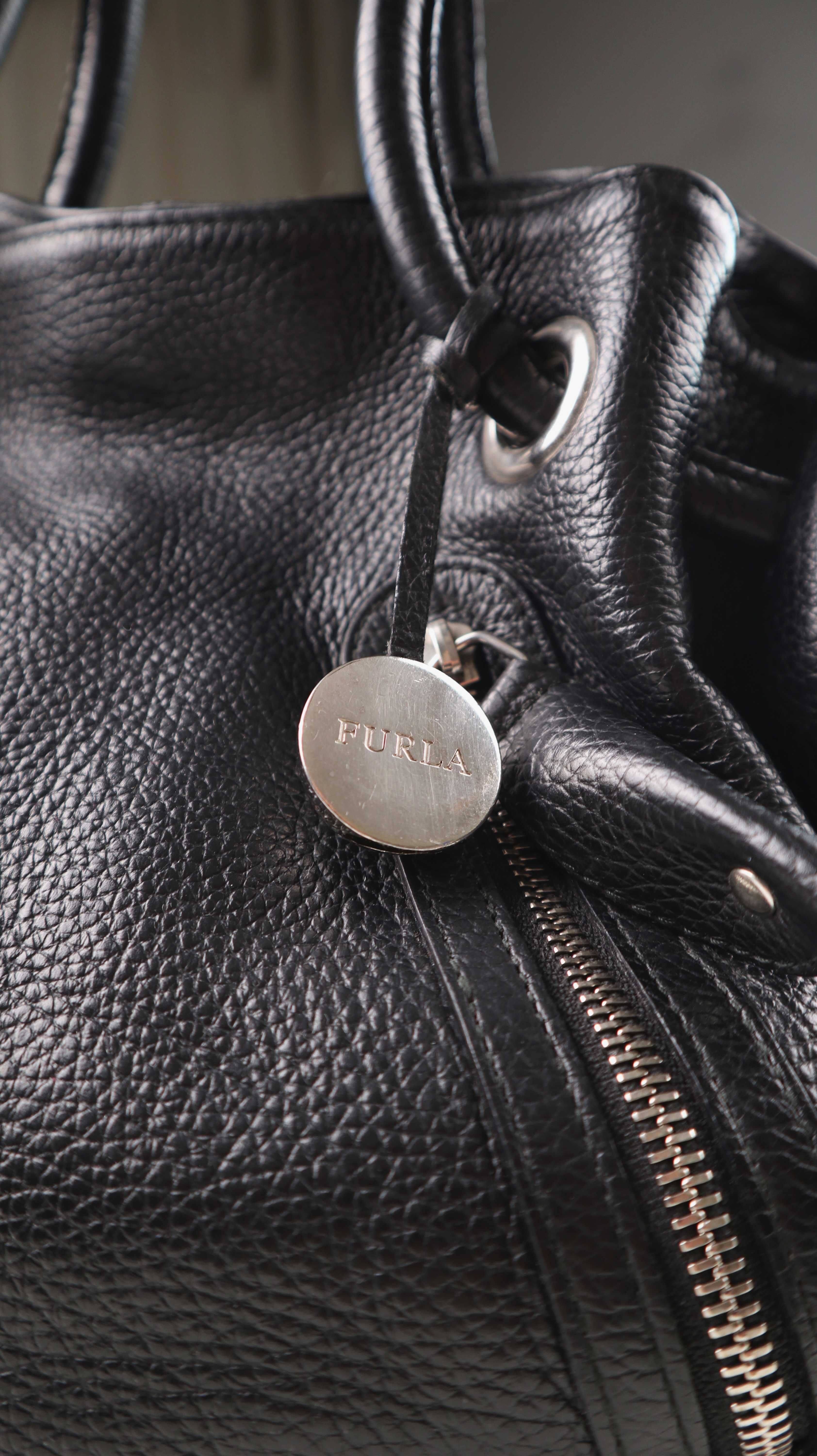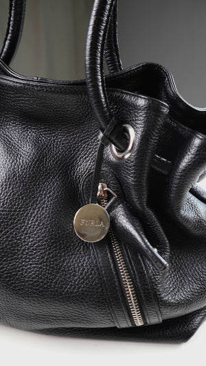 Schwarze Ledertasche von Furla. Sehr hochwertig und gute Mittelgröße, um sie auch auf der Schulter zu tragen. Plus Versand