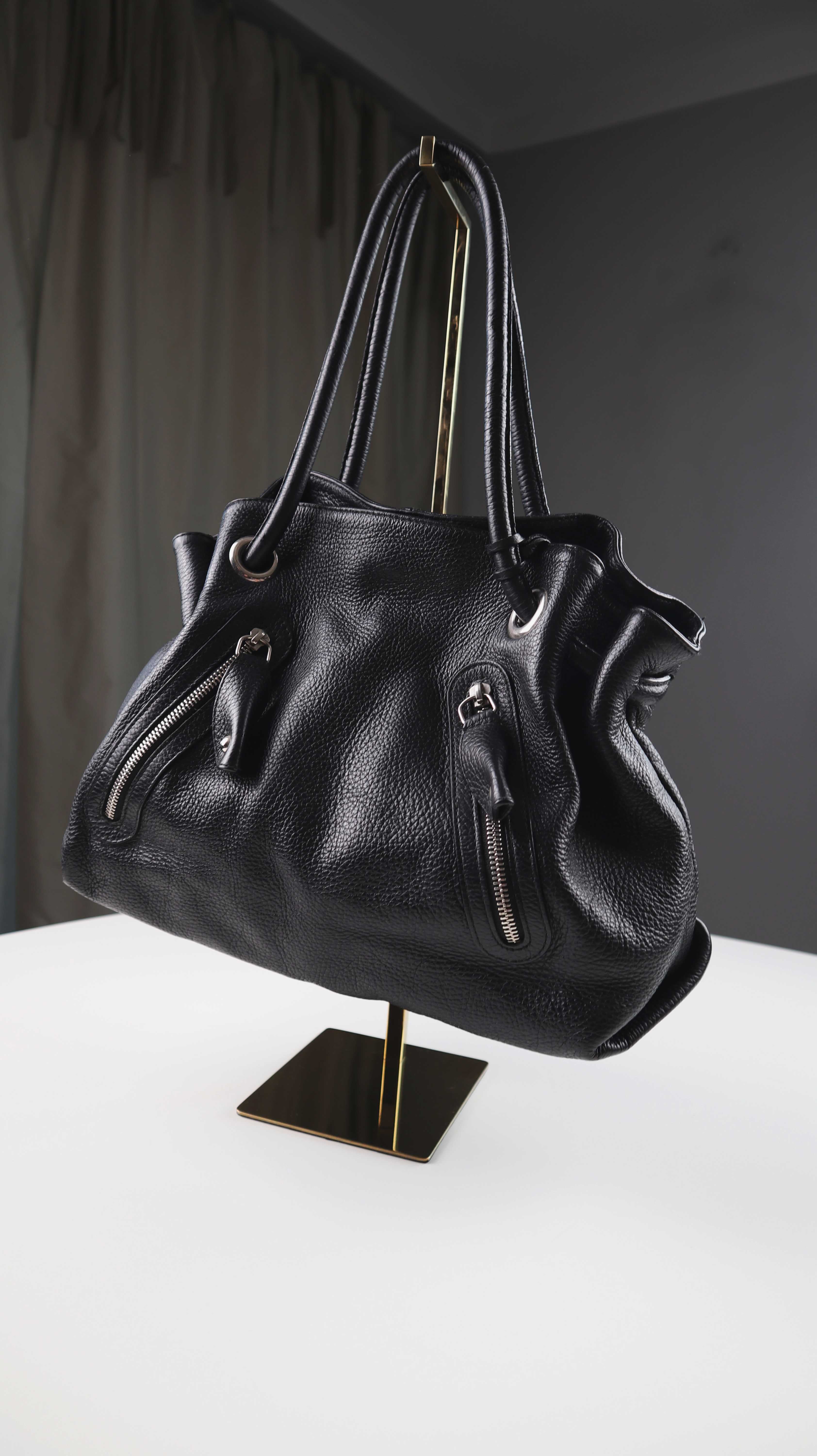 Furla Tasche Handtasche schwarz Shopper Ledertasche Leder Carmen large