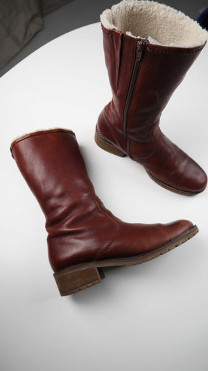 Braune, gefütterte Lederstiefel von Gabor in Größe 9. Sie passen einer 42/43. Plus Versand