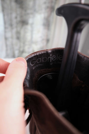 Braune Wildlederstiefel von Gabriele Made in Italy. Sie sind in einer 39. Vorne eckig. Plus Versand