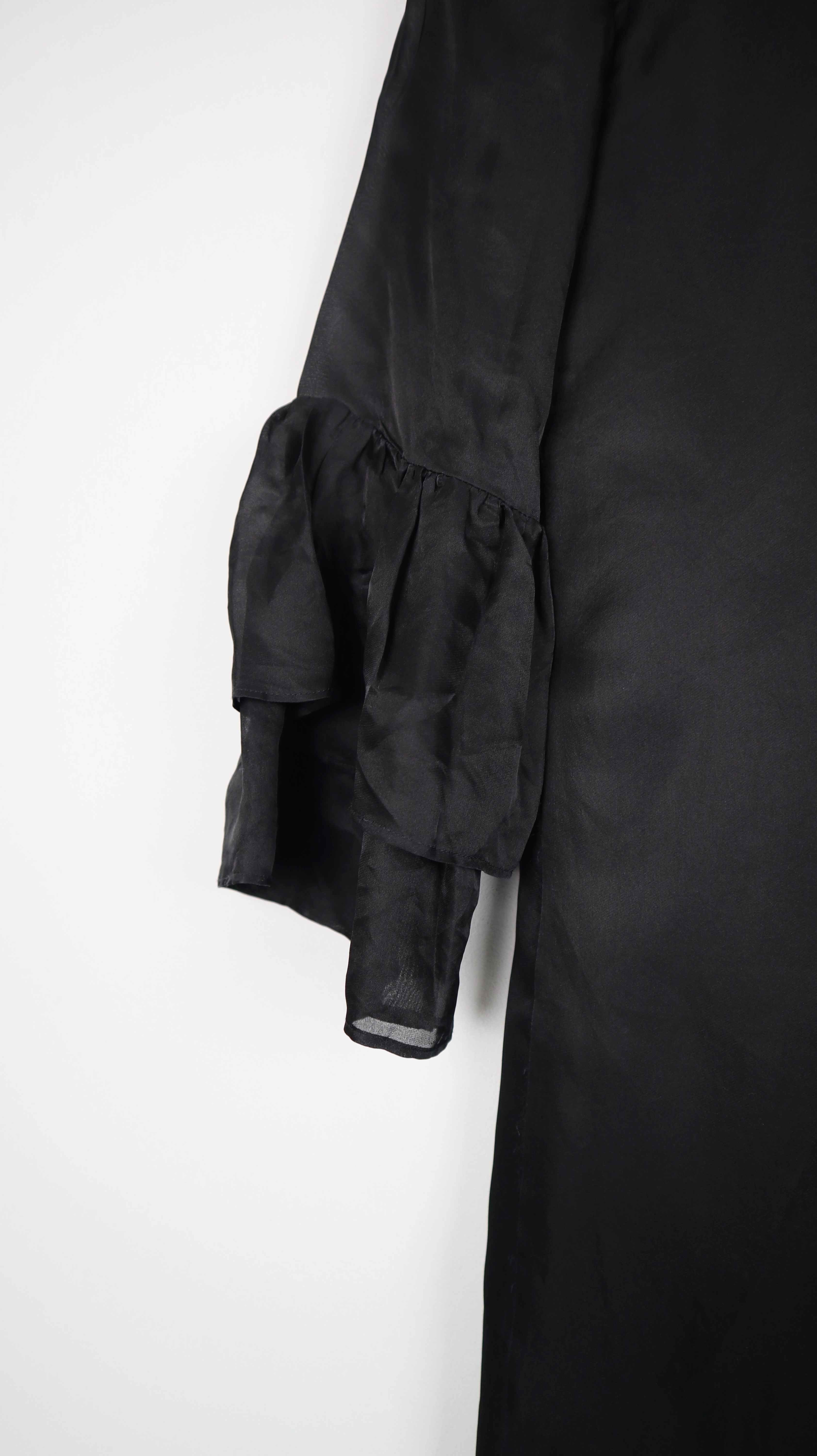 Neuwertiges, schwarzes Kleid von Ganni in Midilänge. Es passt einer 34 XS bis 36 S. 45 cm Achselweite und 88 cm Länge. Plus Versand