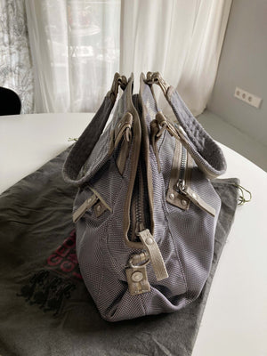 Neuwertige Handtasche von George Gina & Lucy in Grau. Das Modell heisst Challengenesse, die Reißverschlüsse sind grob. Ein langer Gurt ist dabei. Plus Versand