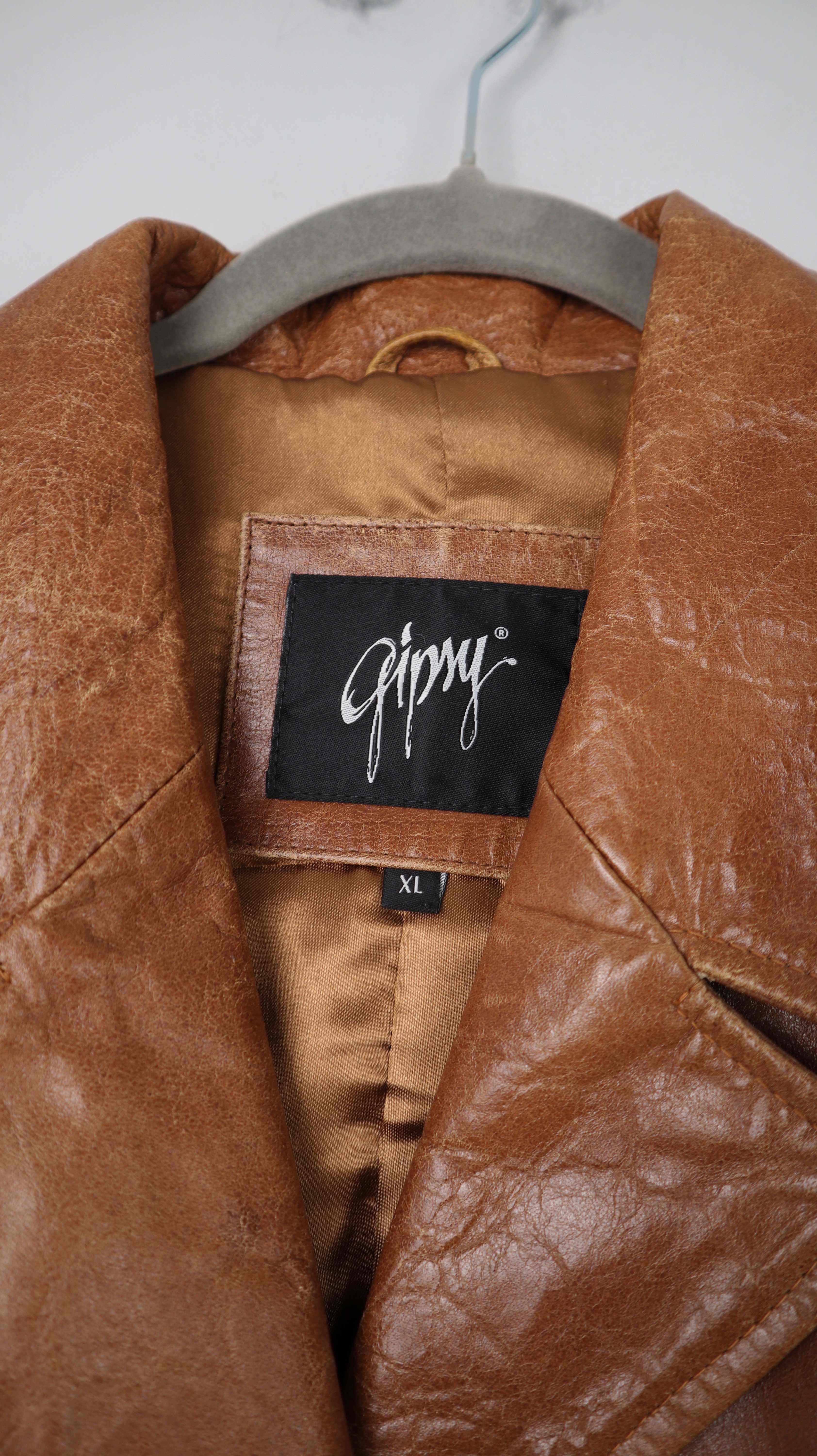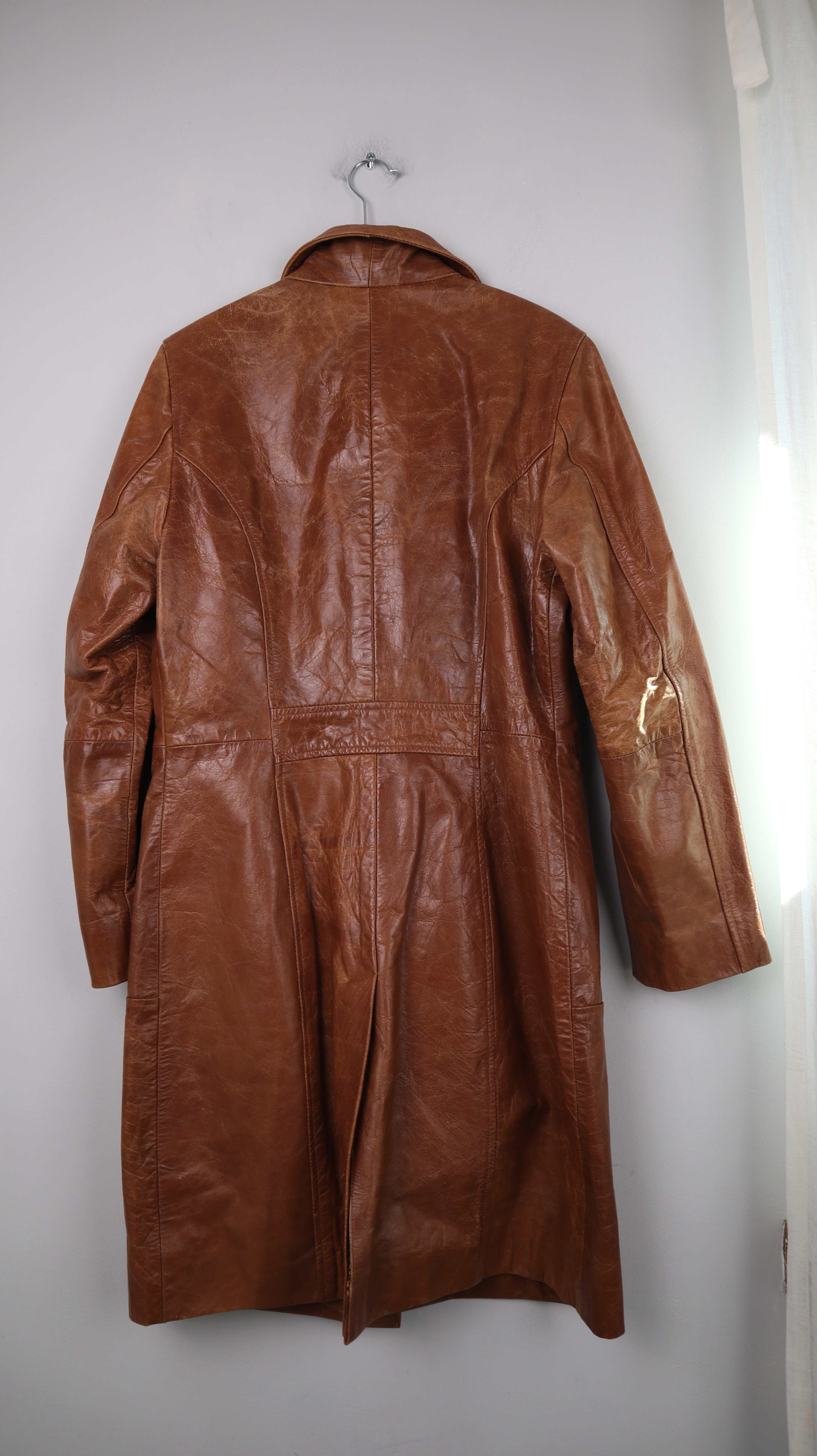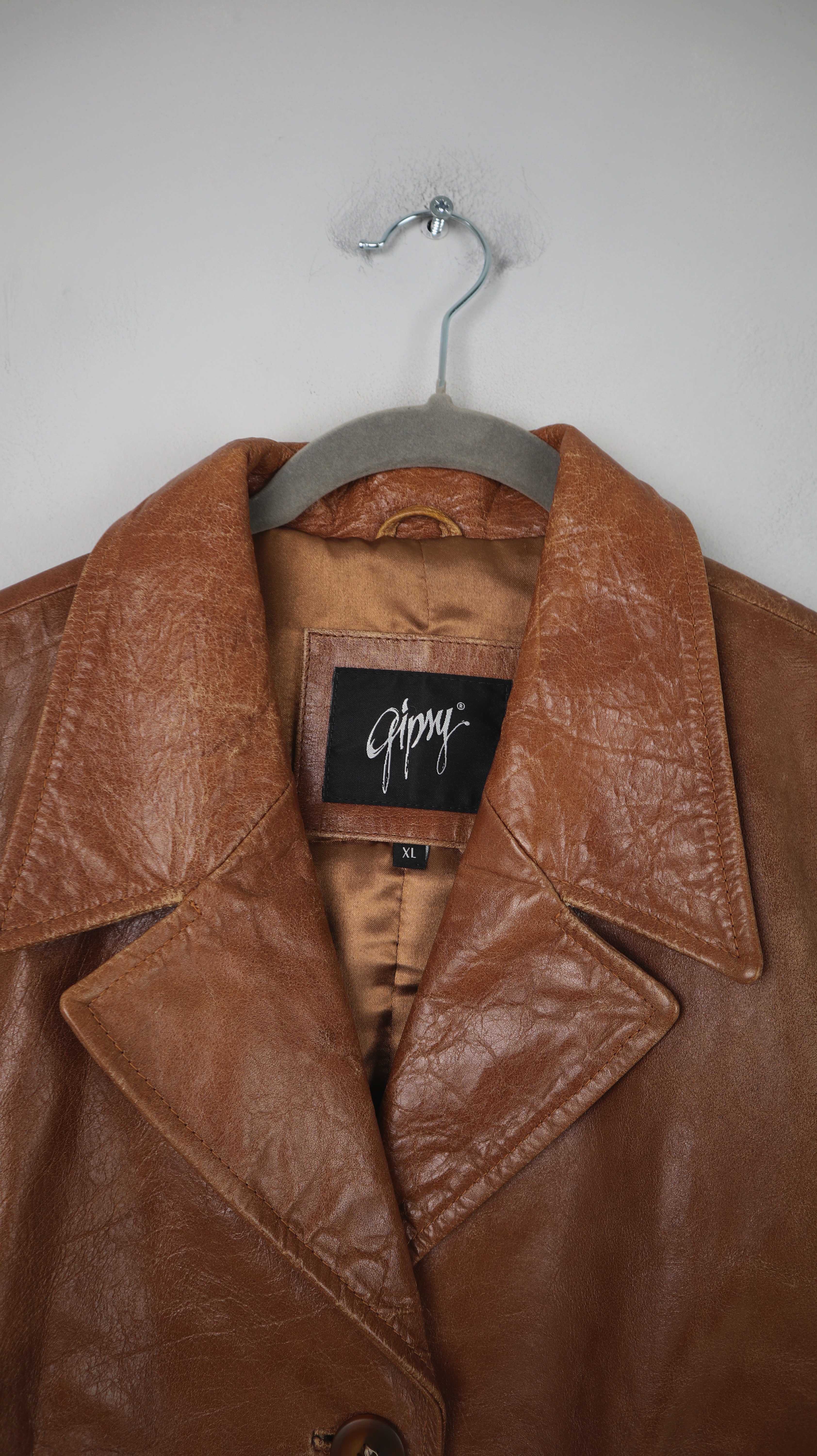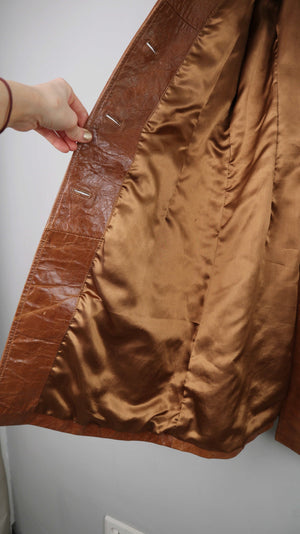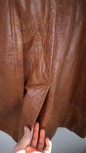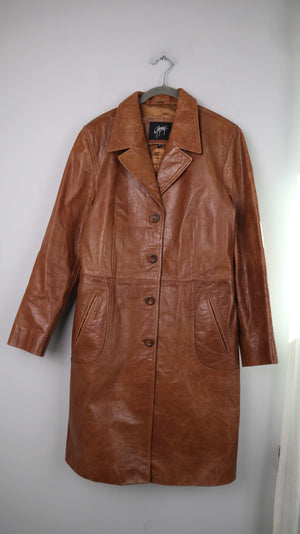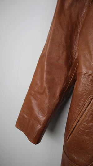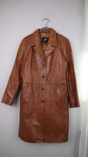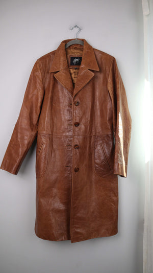 Brauner Ledermantel von Gipsy in XL für Damen. 47 cm Achselweite und 102 cm Länge. Plus Versand
