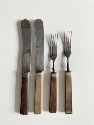 Antikes Besteckset für zwei Personen von Gottlieb Hammesfahr Solingen aus Stahl. Plus Versand