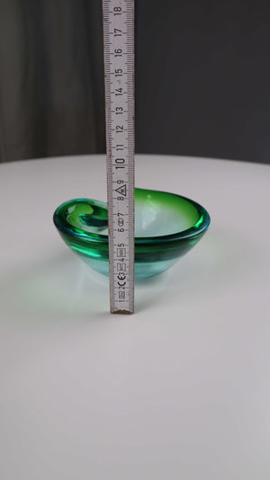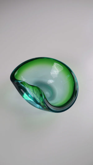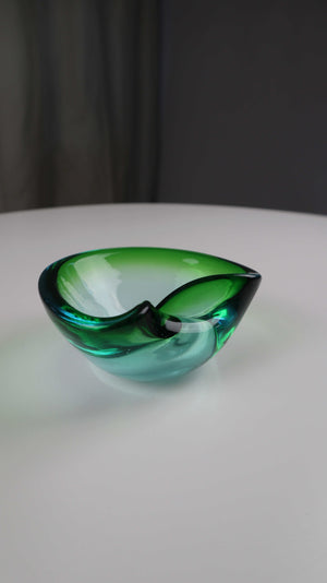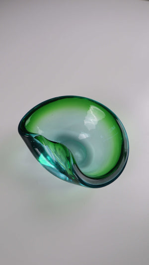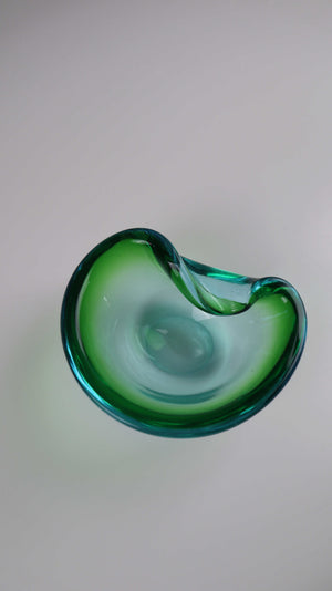 Grüner mid century Aschenbecher Muranoglas grün blau Handgeblasen