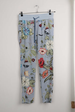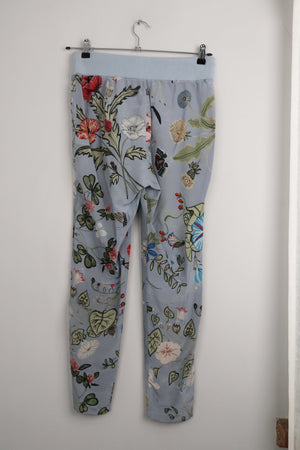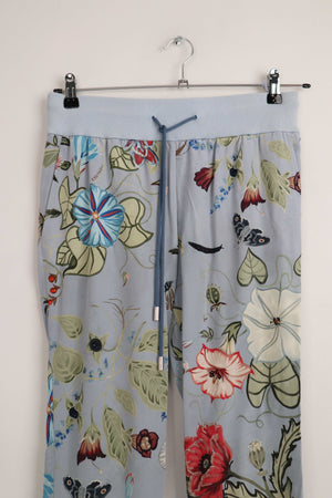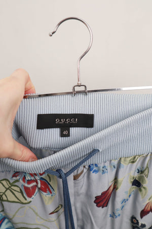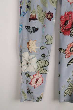 Gucci Hose Sommerhose Blau 38 M 40 L Seidenhose Muster Blumen Silk