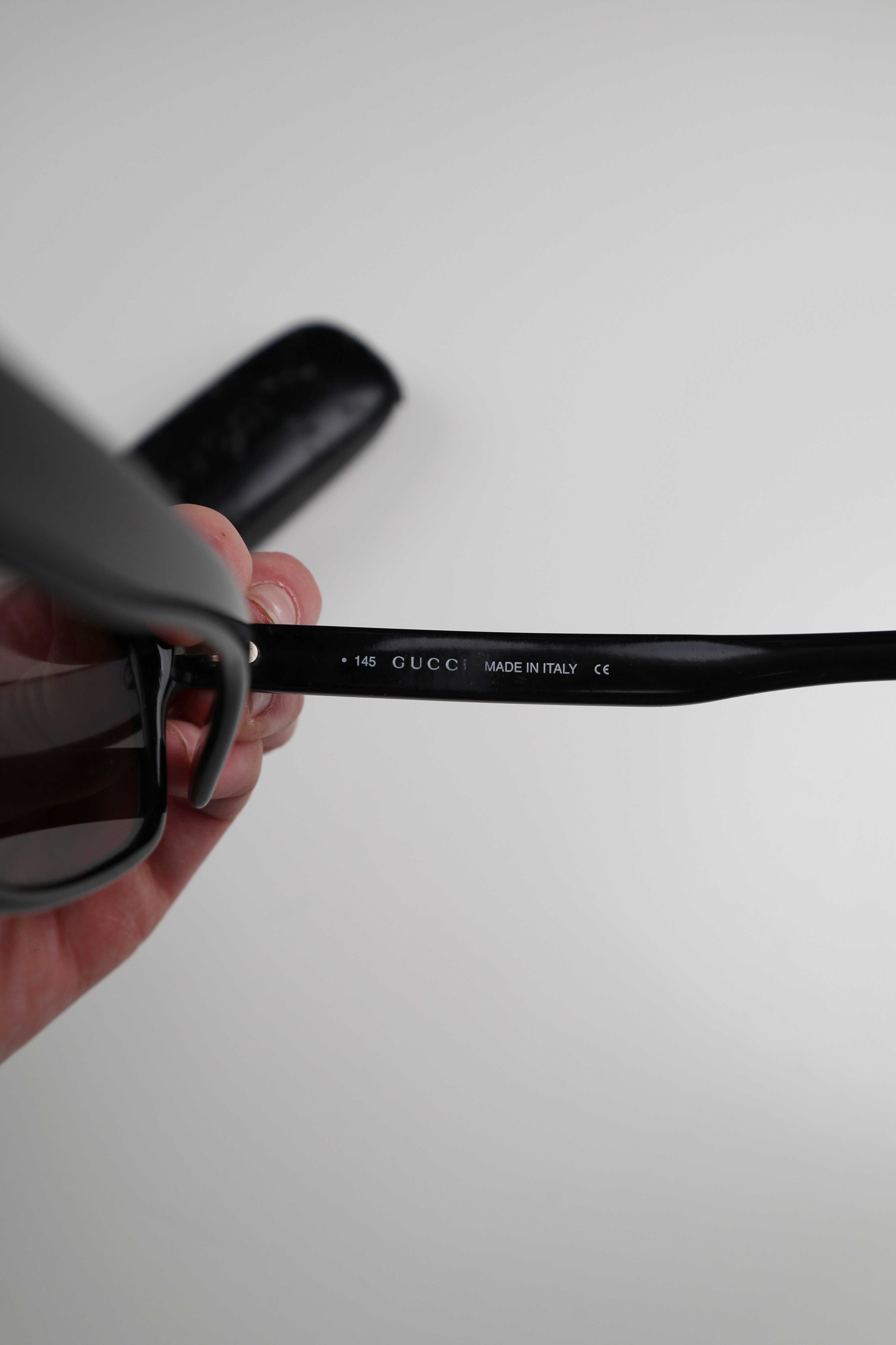 Schwarze Sonnenbrille von Gucci, made in italy. Sie hat leicht getönte Gläser mit Sehstärke drin. Plus Versand
