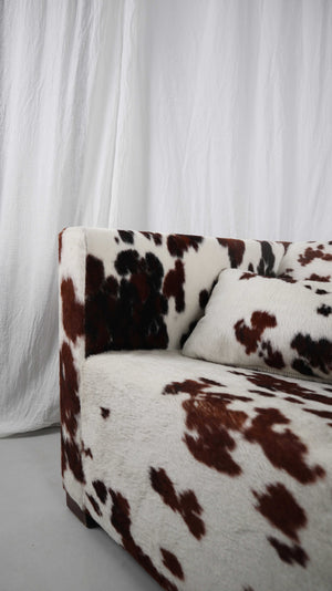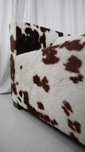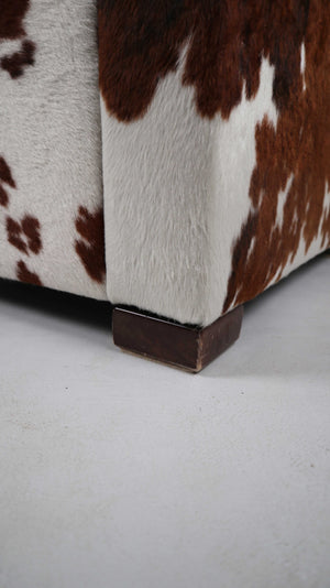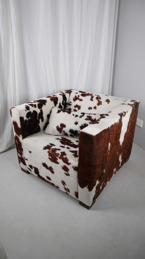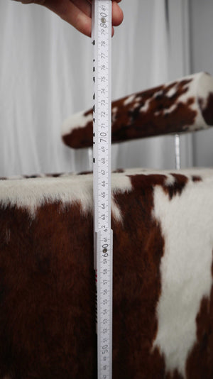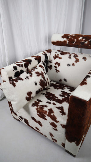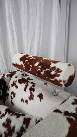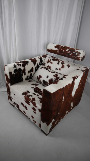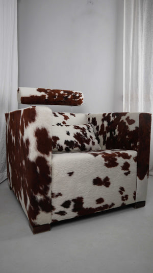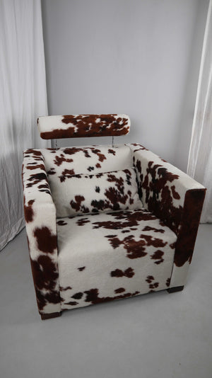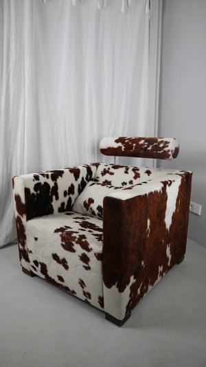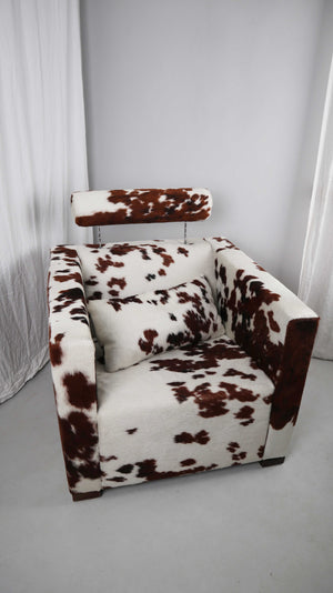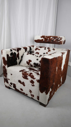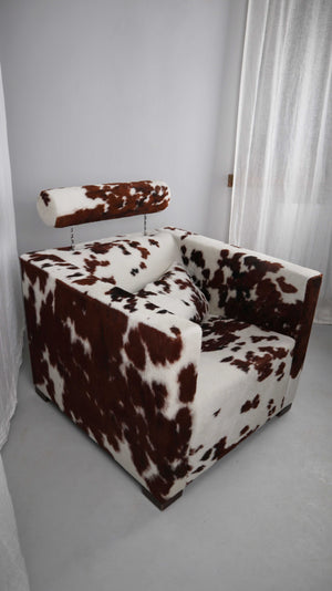 Gyform Sessel Kuhfellsessel braun weiß Kopflehnstütze Fellsessel Design Clubsessel