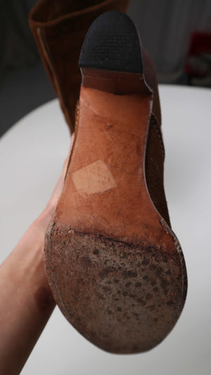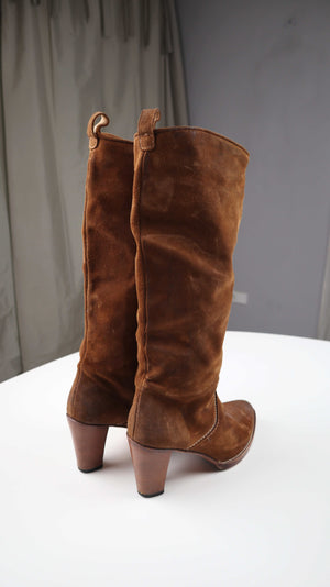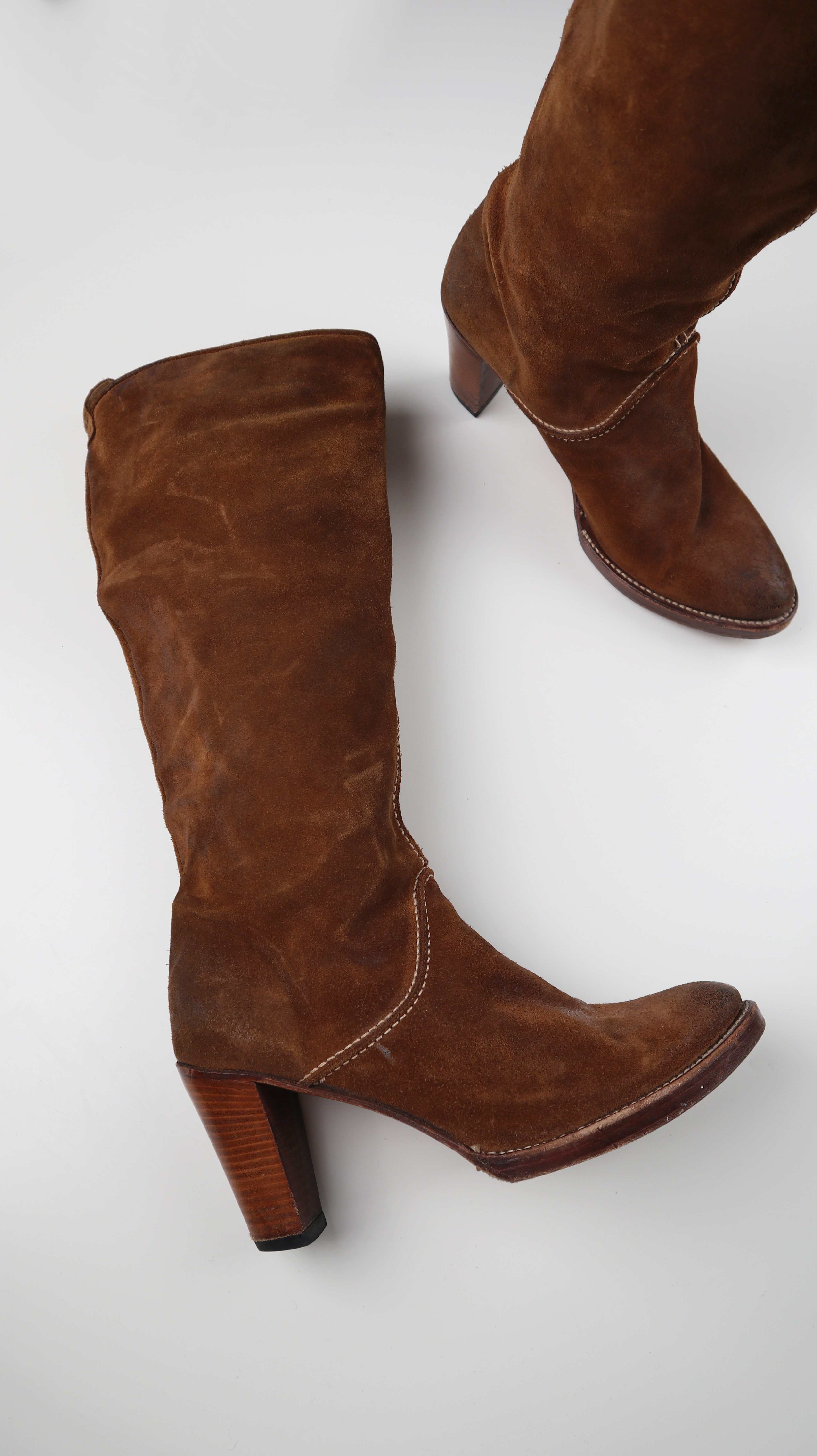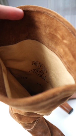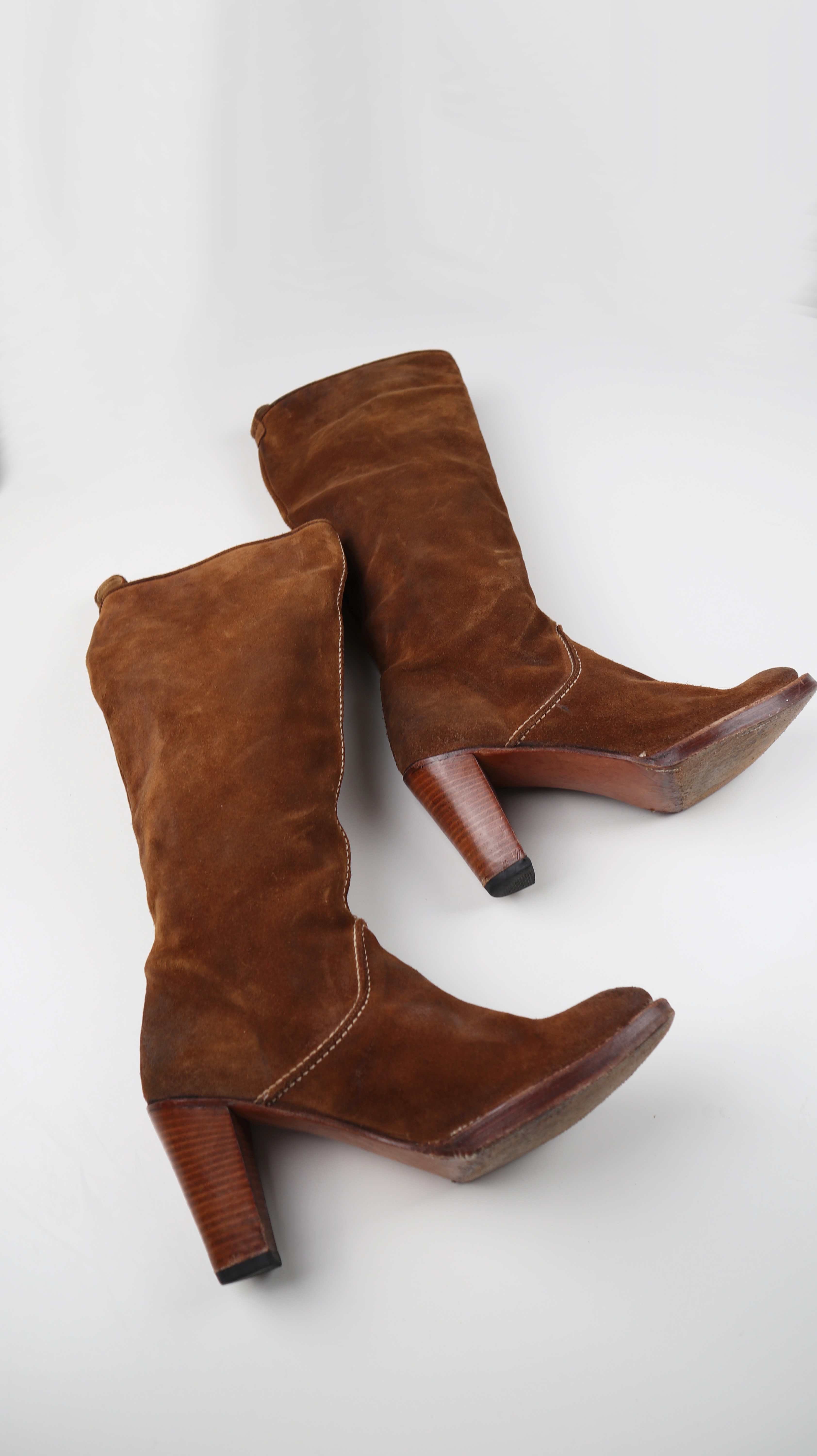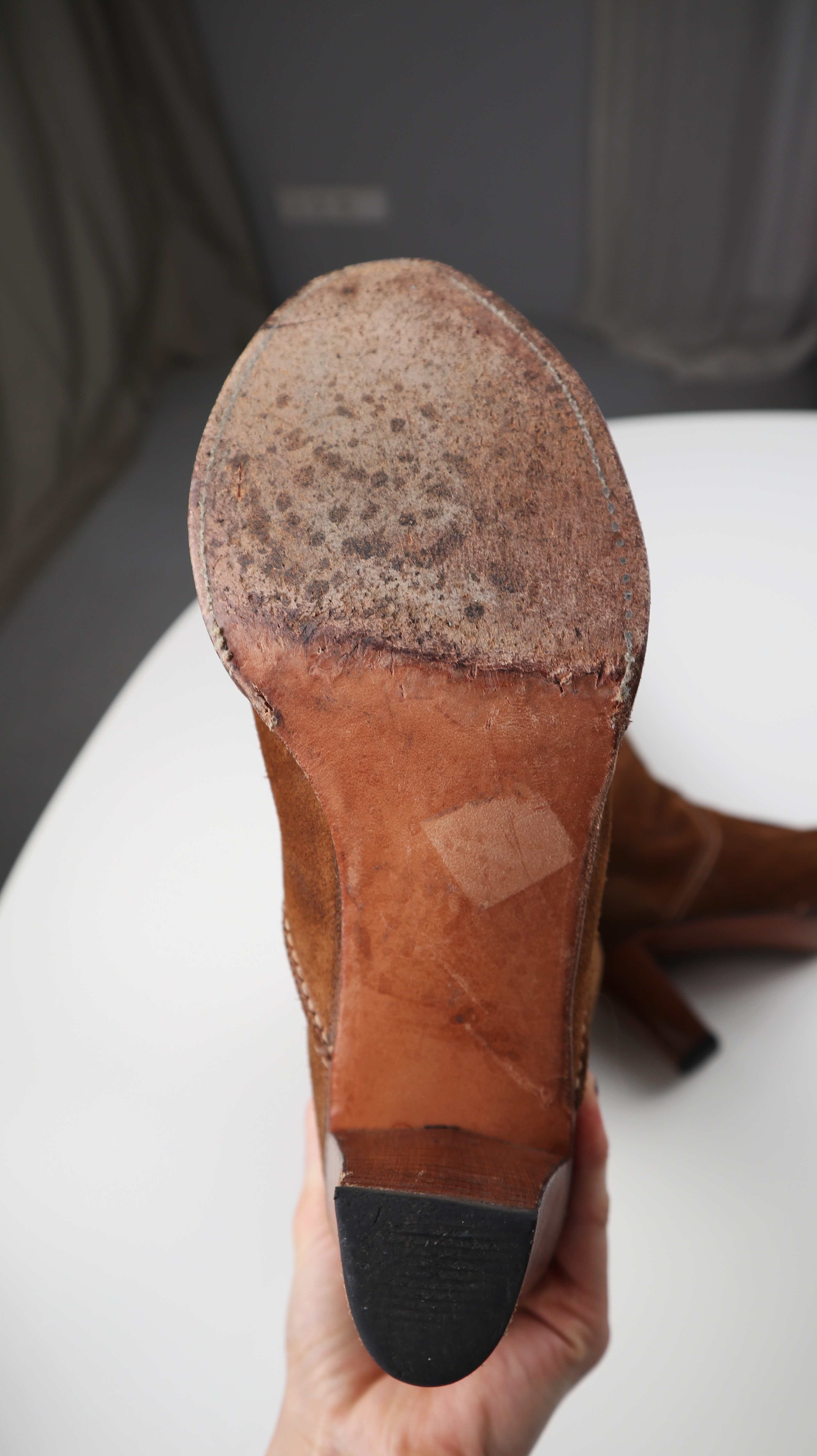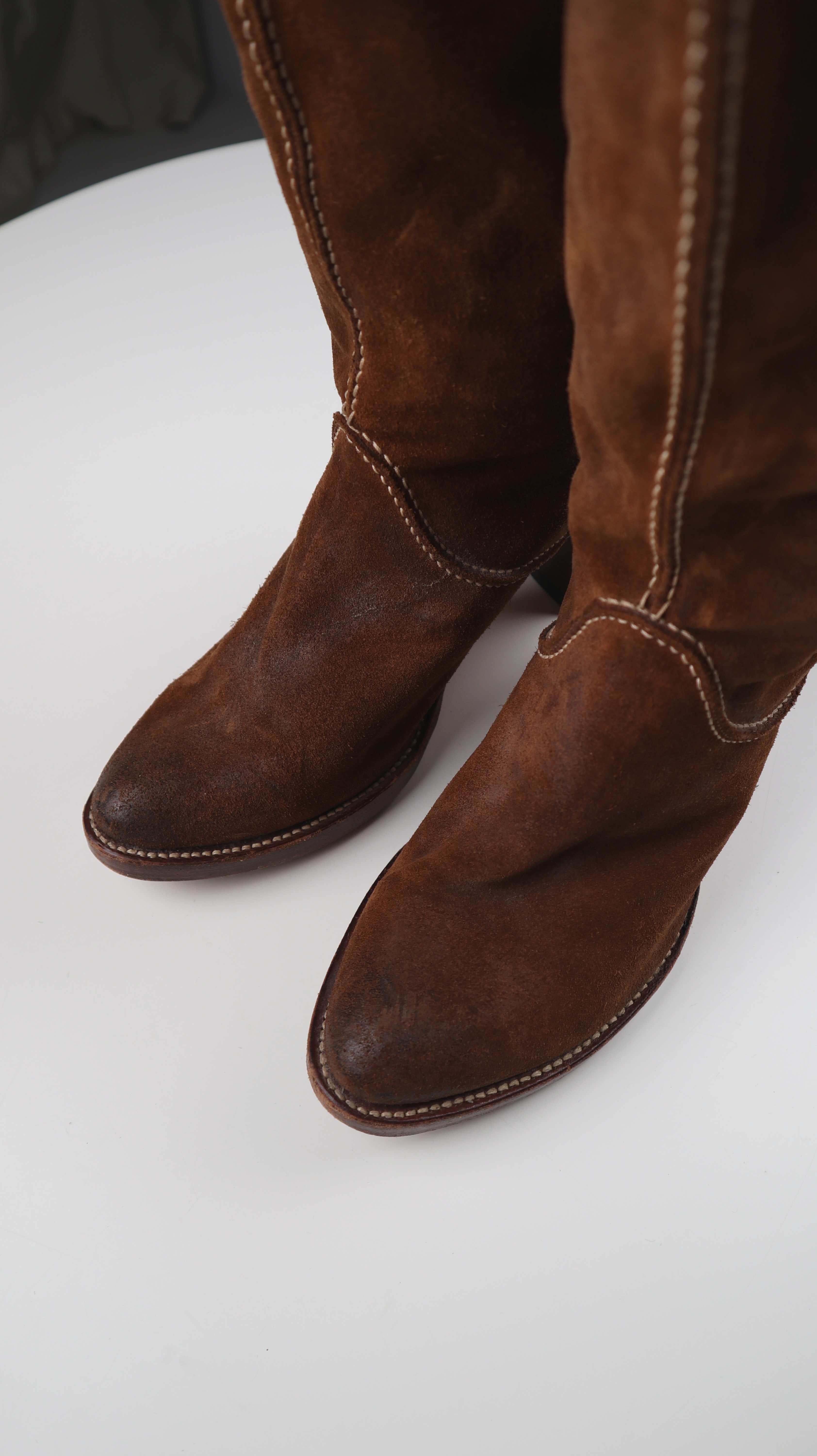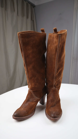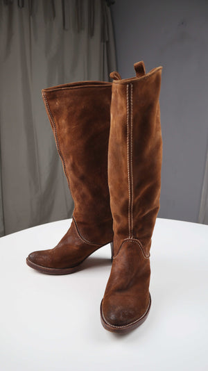 H.F. Senka Stiefel Braun 40 Wildlederstiefel Absatzstiefel lang Lederstiefel
