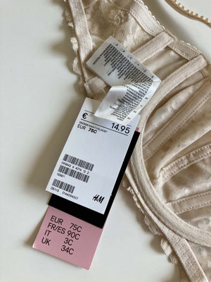H&M BH neu Creme Beige 75 C Glitzersteine
