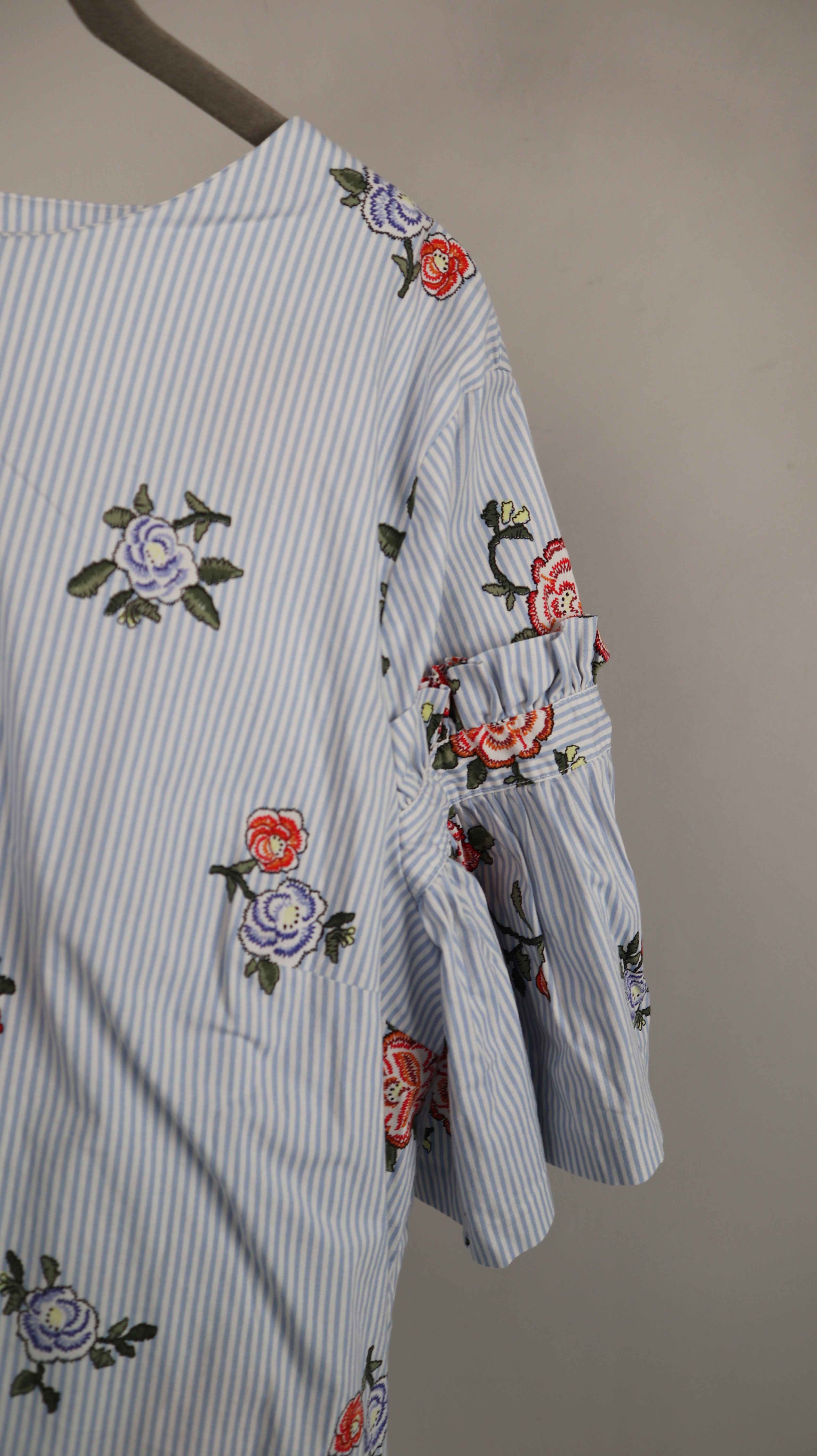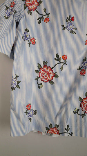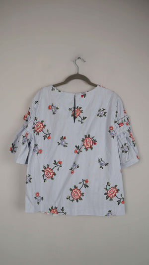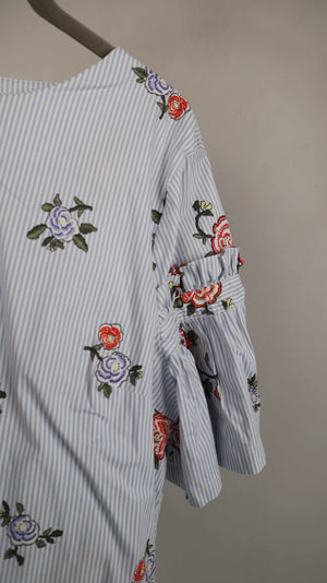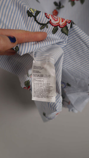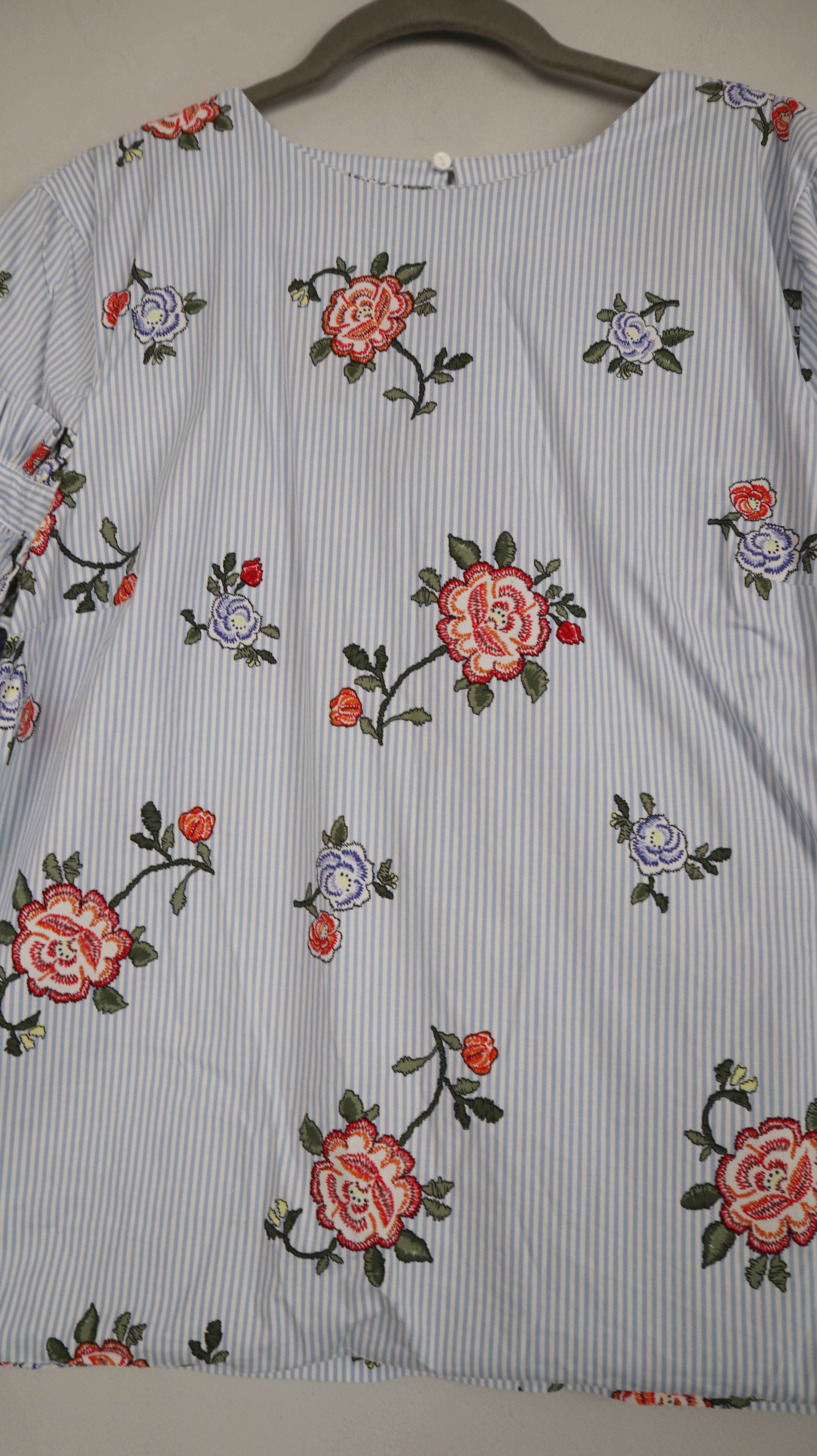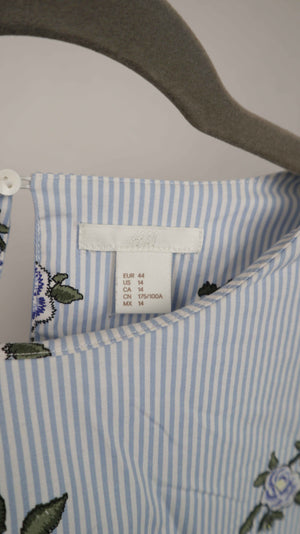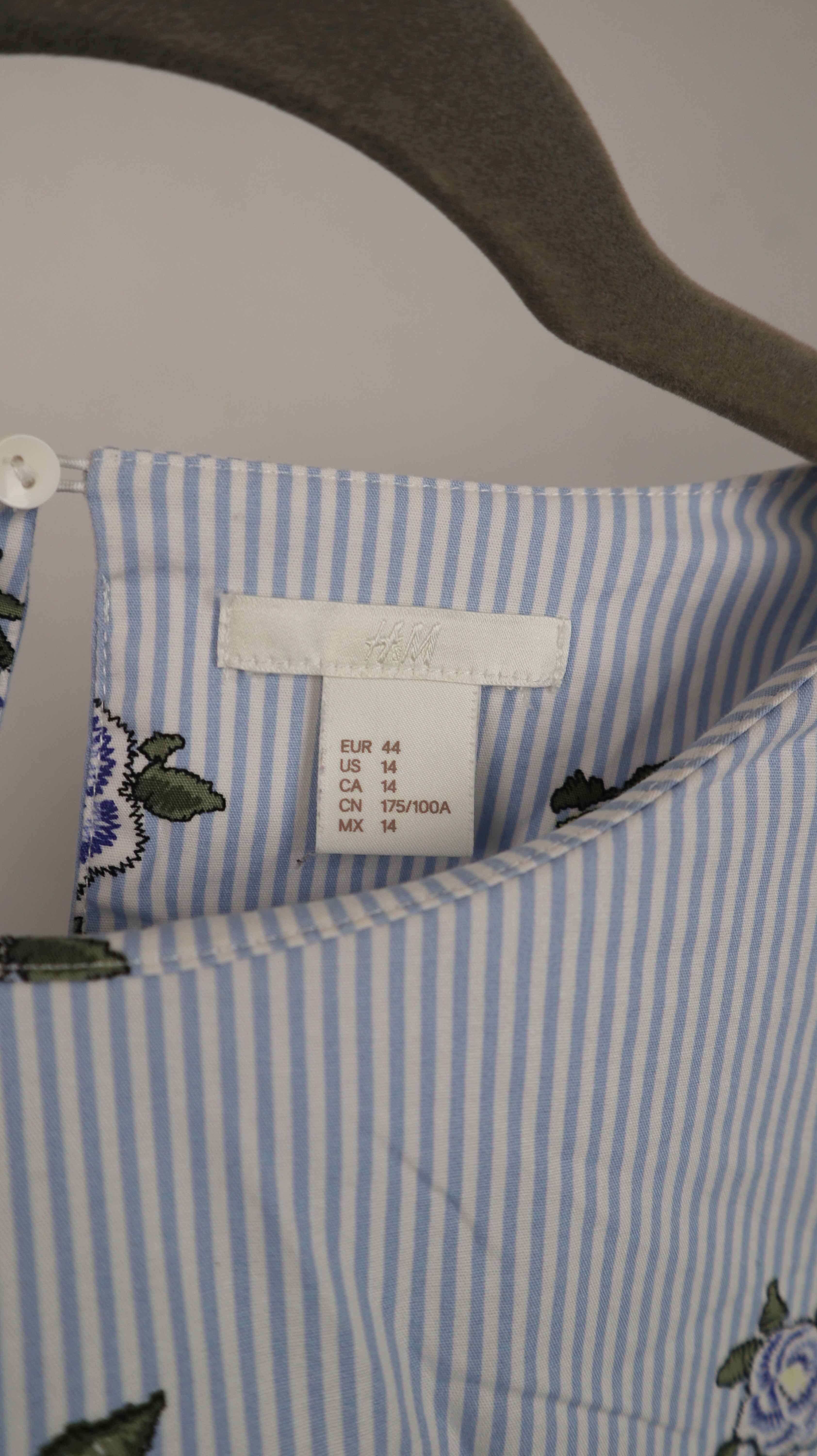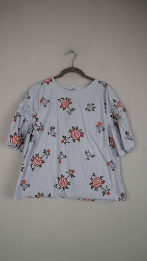 H&M Bluse blau 44 XL gestreift Blumen Hemd Streifenshirt Oberteil