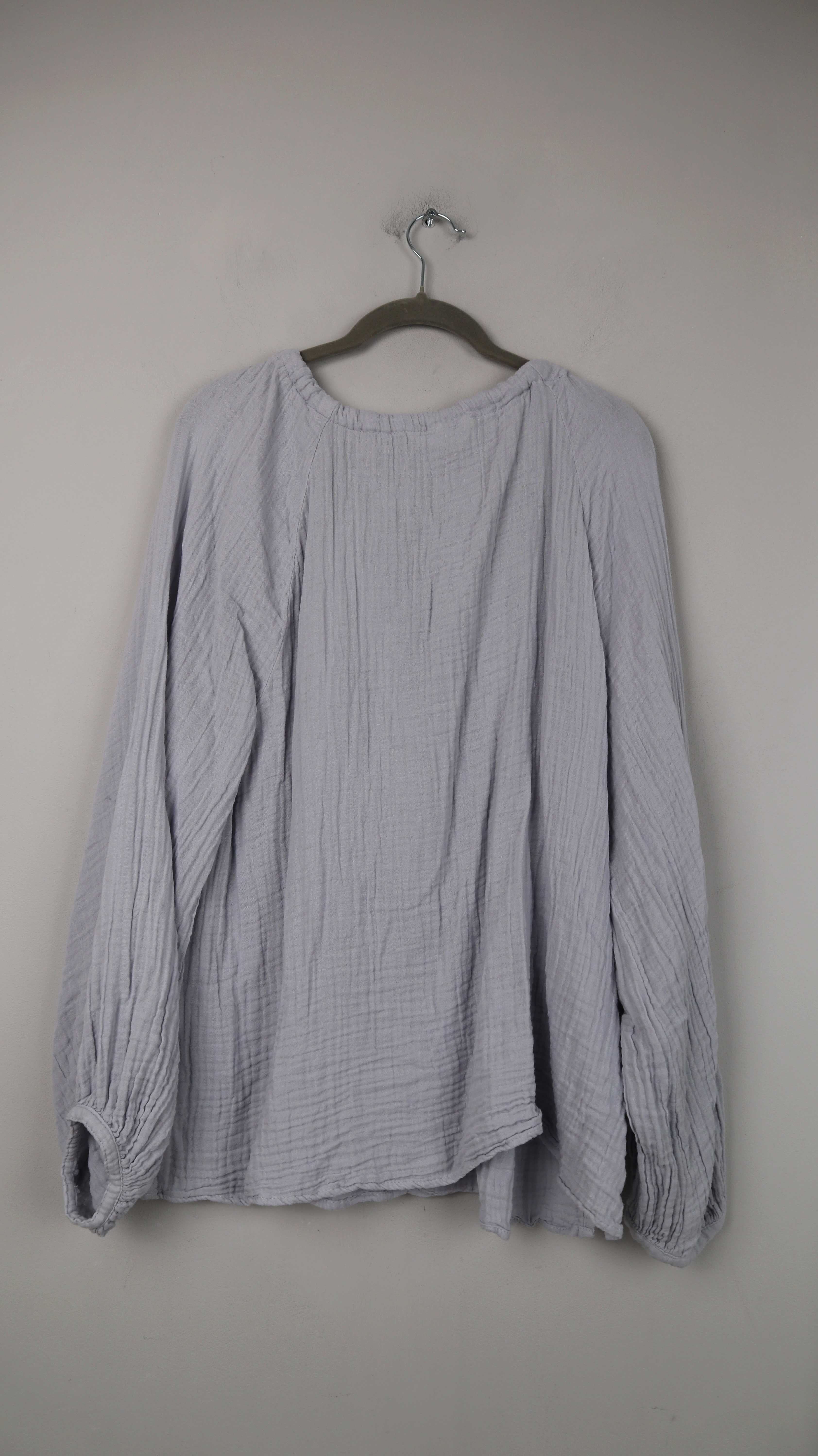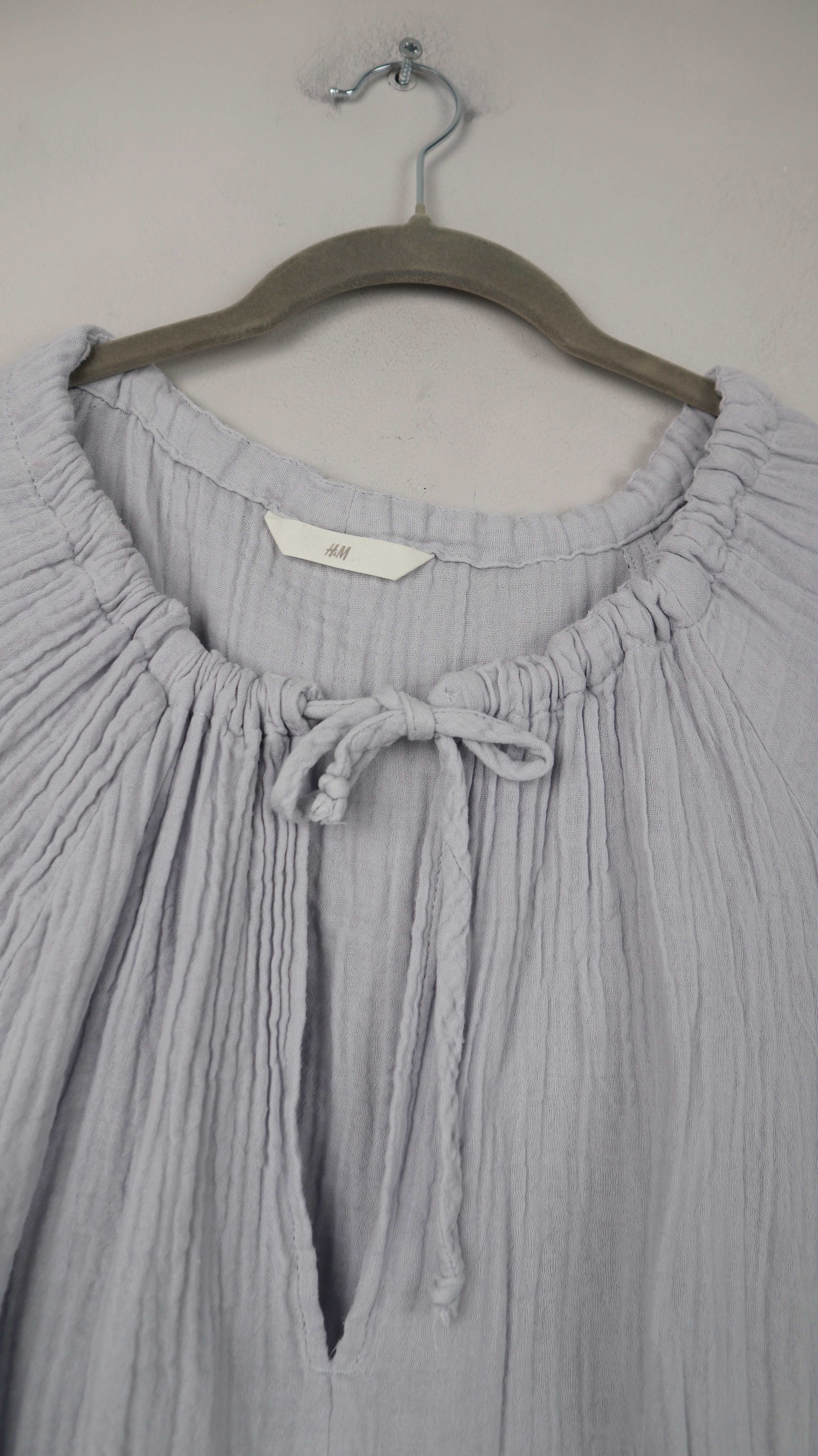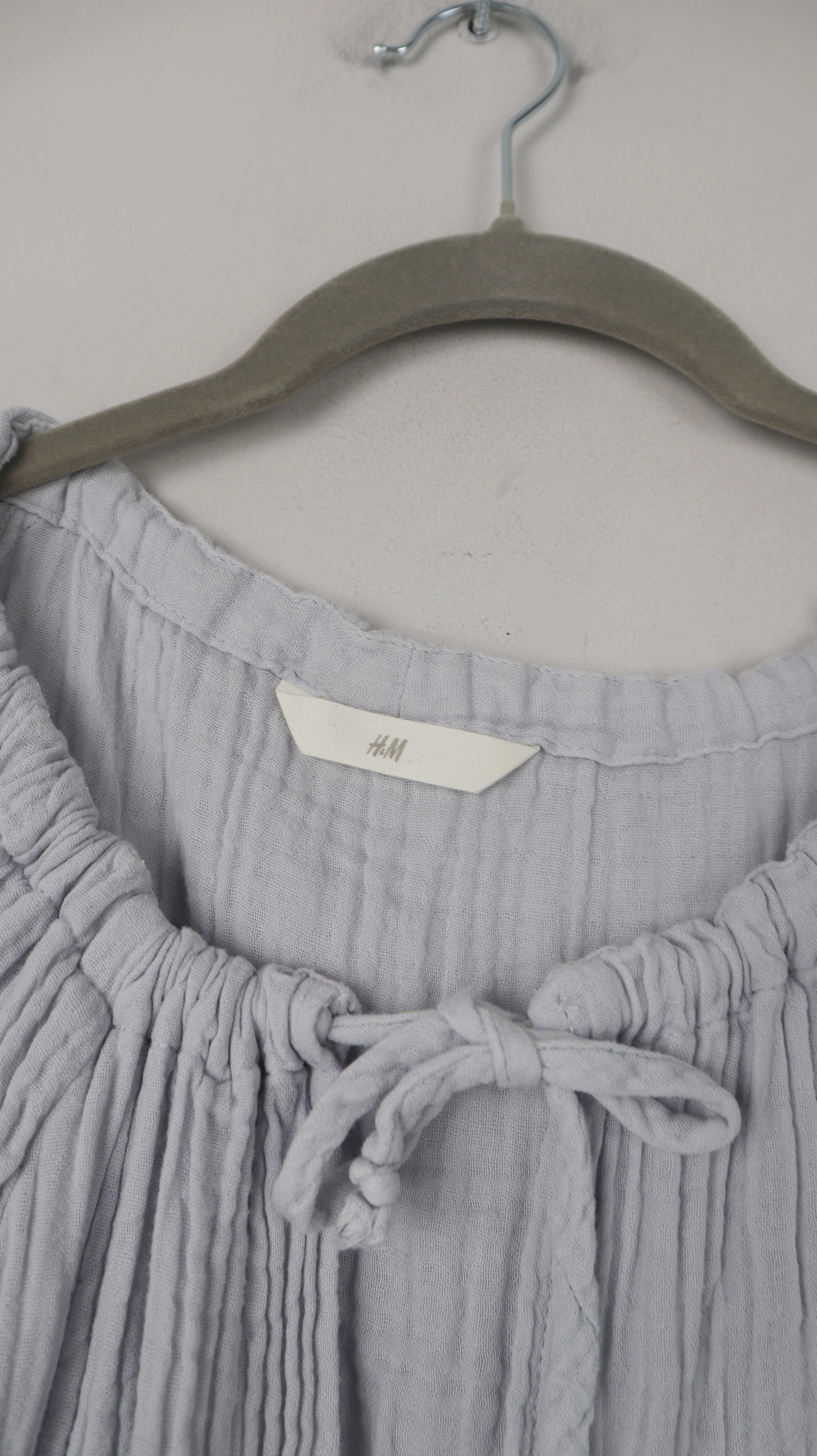 Hellblaue Bluse von H&M. Sie passt einer 40 L und ist aus Baumwolle. 55 cm Achselweite und 64 cm Länge. Plus Versand
